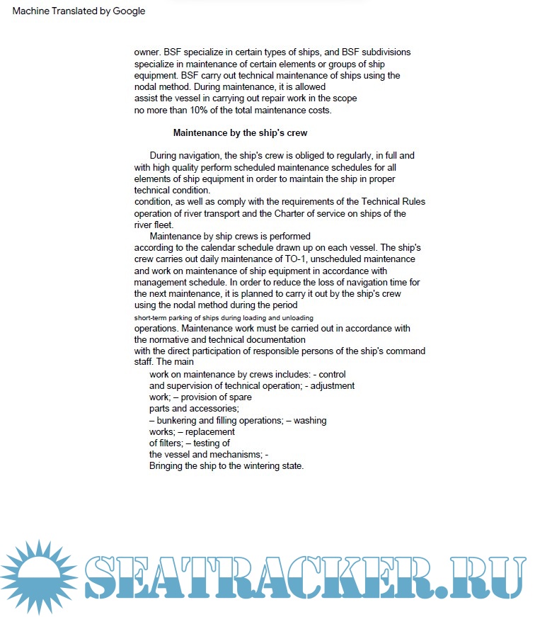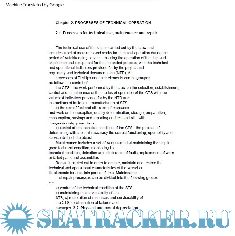 Year: 2013 Language: english Author: O. K. Zyablov Genre: Technical book Publisher: Publishing House FBOU VPO Format: PDF Quality: Scanned pages Pages count: 82 Description: The processes of technical operation of the fleet are considered, including technical use, maintenance and repair, as well as organizational bases of management and technical operation. Data are given on the relationship between operation processed and changes in the technical condition of the ship elements, the rules for surveying ships in operation, methods and types of maintenance and repair. Additional info: Machine-translated from russian to english language for the benefir of english-speaking members of the forum. There might be some figures in the book which couldnot be translated properly - apologies for that.