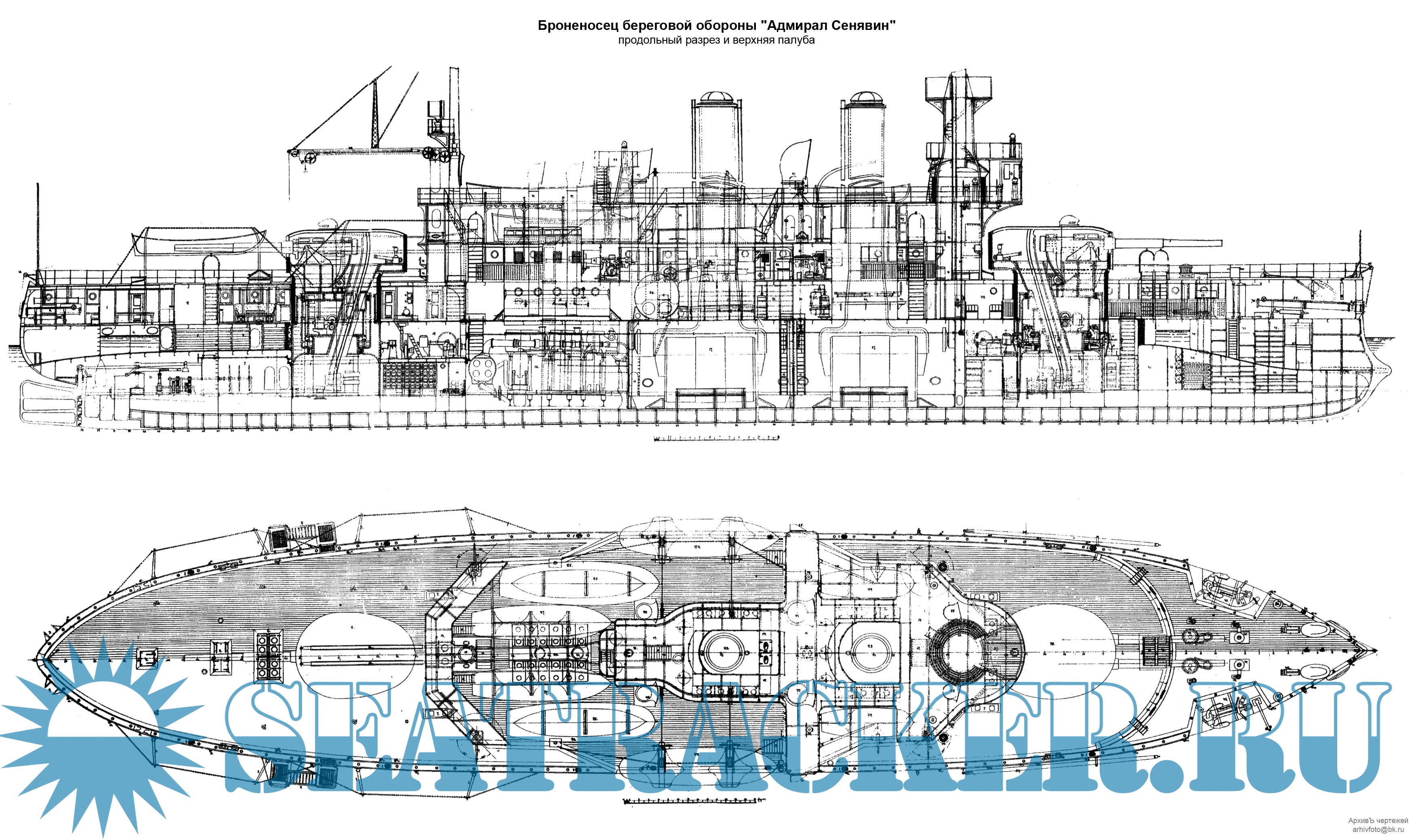 Броненосец береговой обороны "Адмирал Сенявин" 1896 год (чертежи)