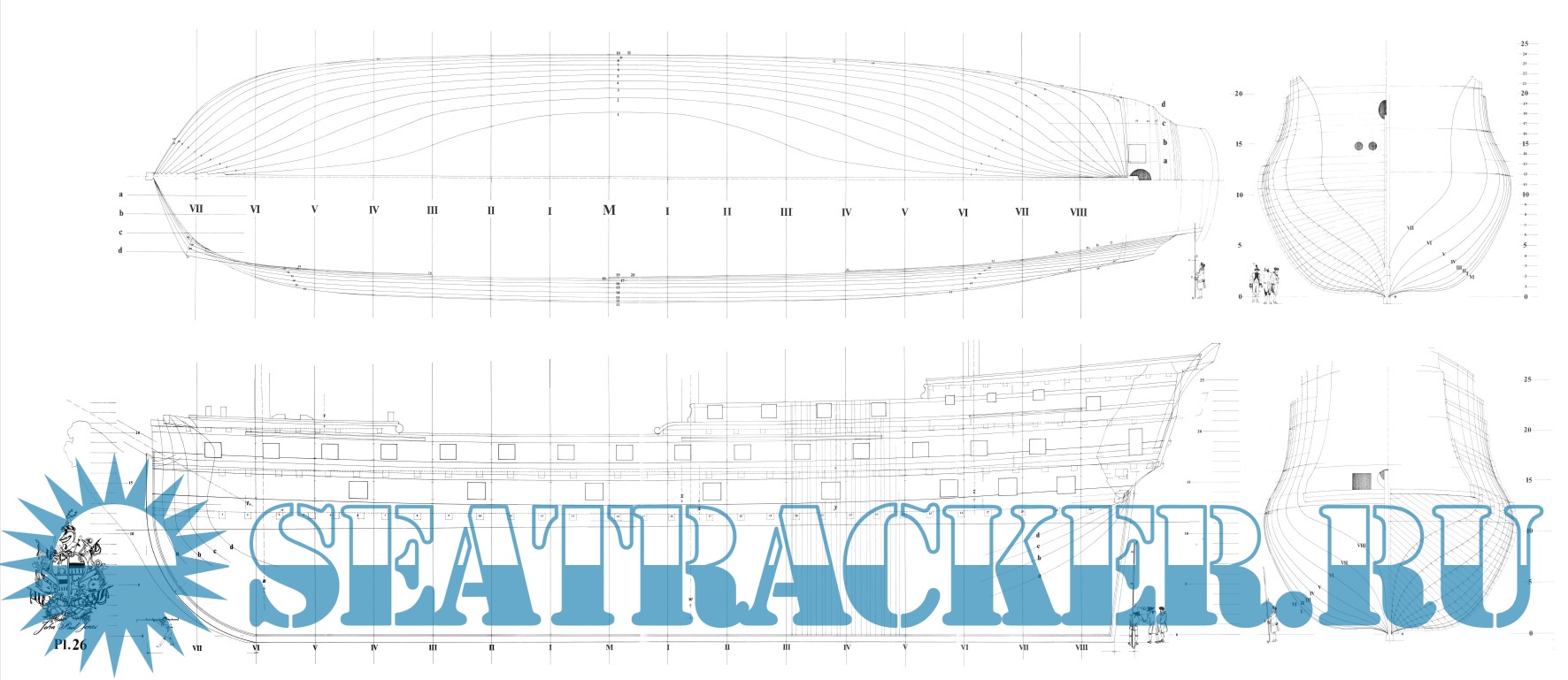 26 листов чертежей парусного корабля Bonhomme Richard (1779 год)