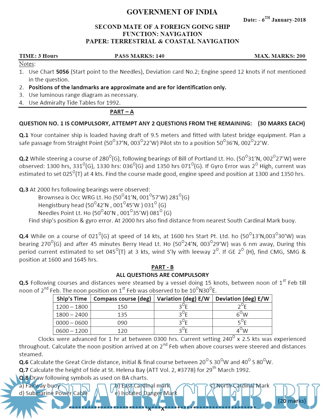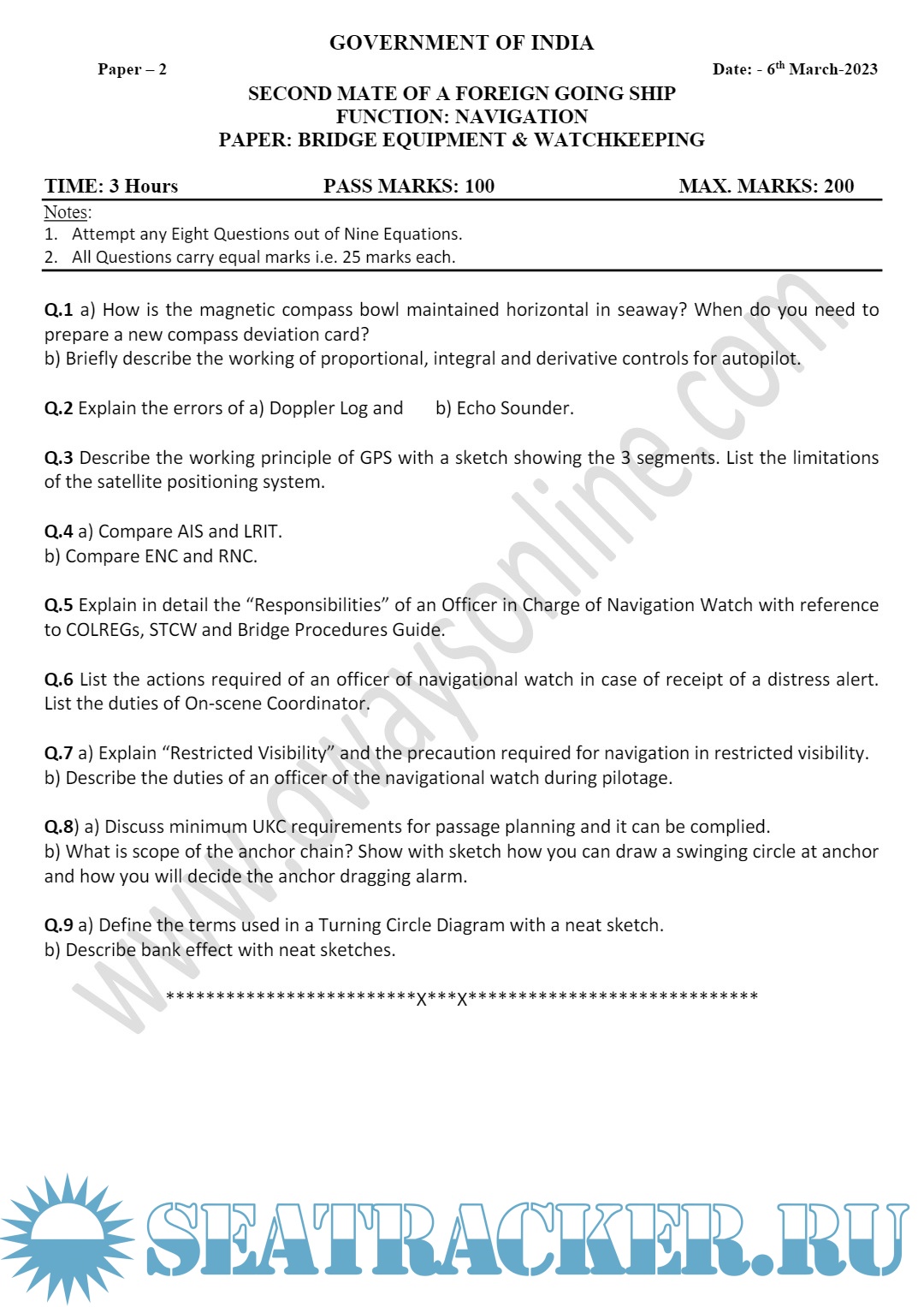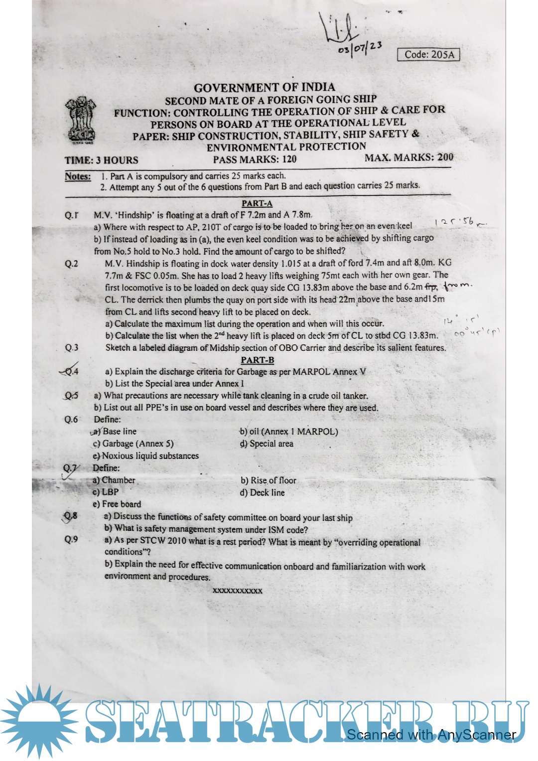 Question Paper Set (July 2023) for Second Mate (F.G.) Mercantile Marine Department (MMD), India Examinations
