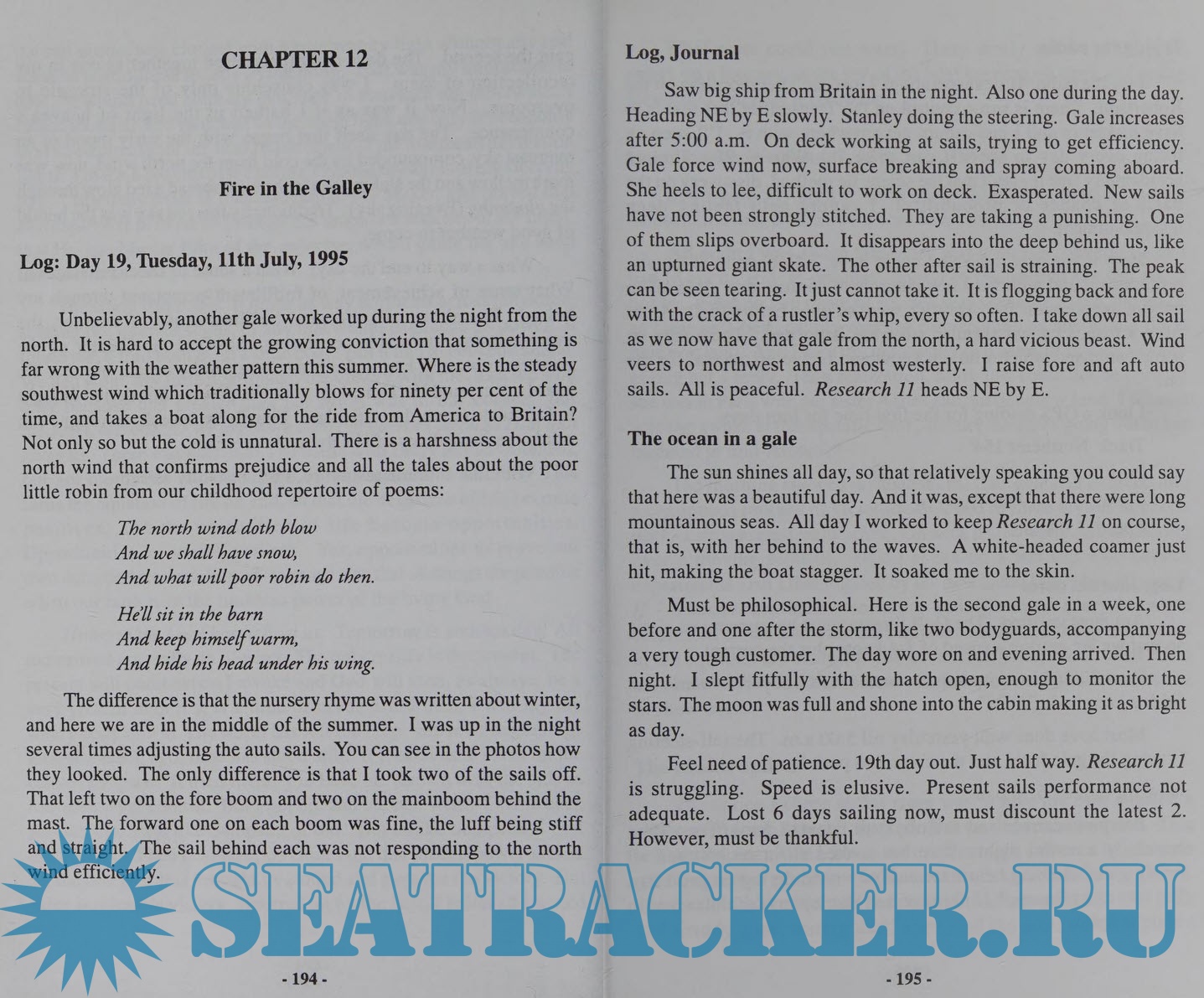 Description: Describes a solo voyage across the north Atlantic, that turned out to be an unprecedented challenge. The author spells out the nature of the challenge and the triumph of overcoming it.
