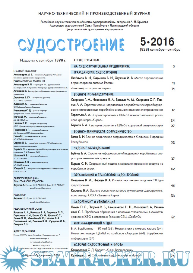 Журнал «Судостроение» №825 март-апрель - Горелов В.В. (зам. главного редактора) [2016, PDF]