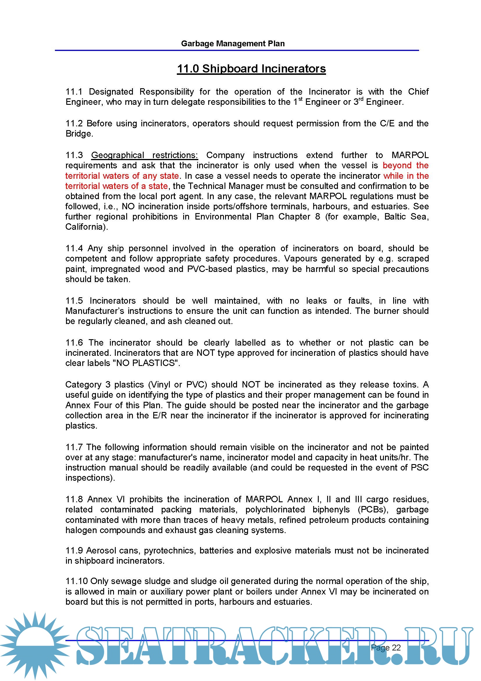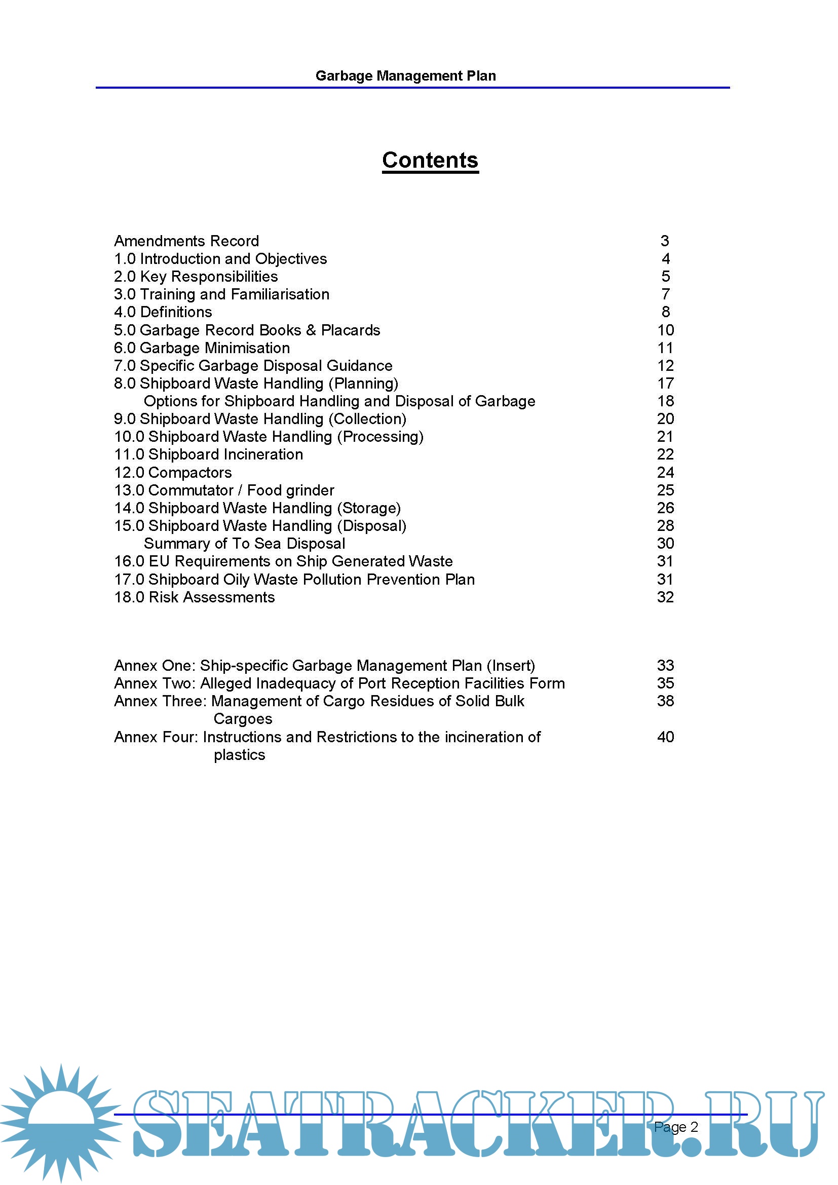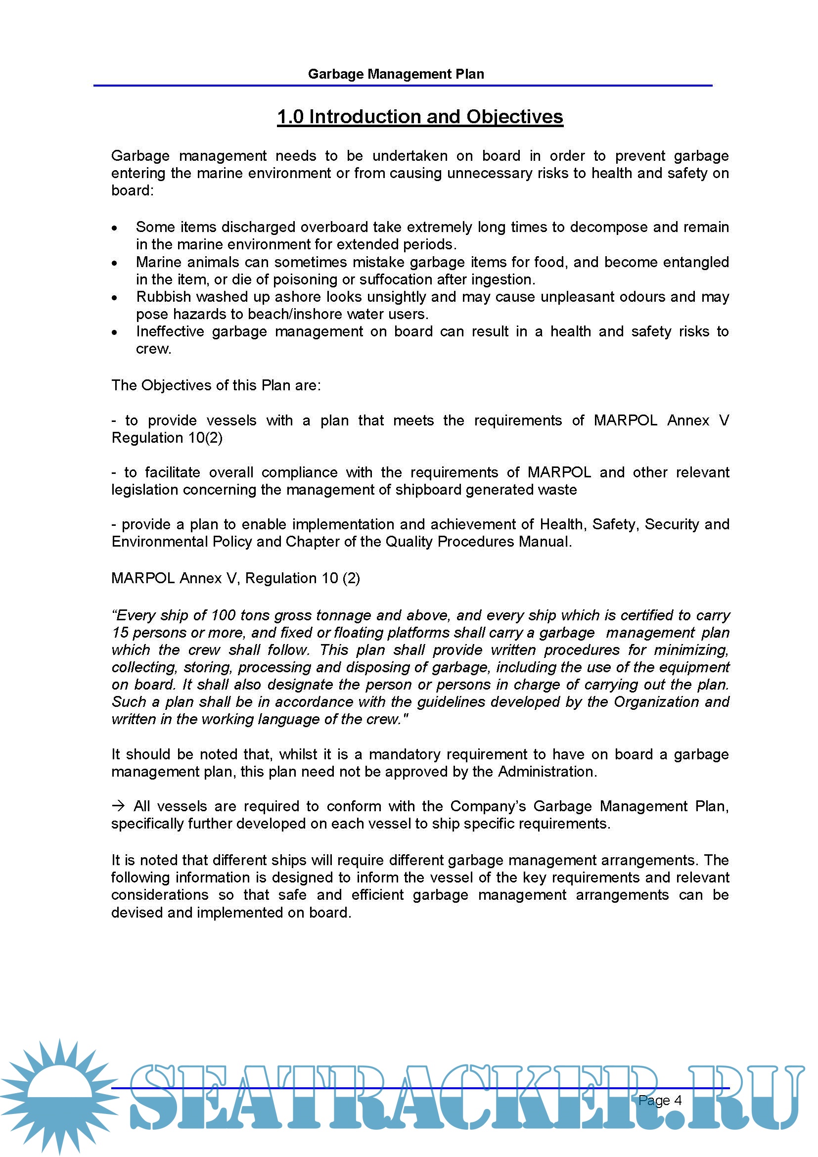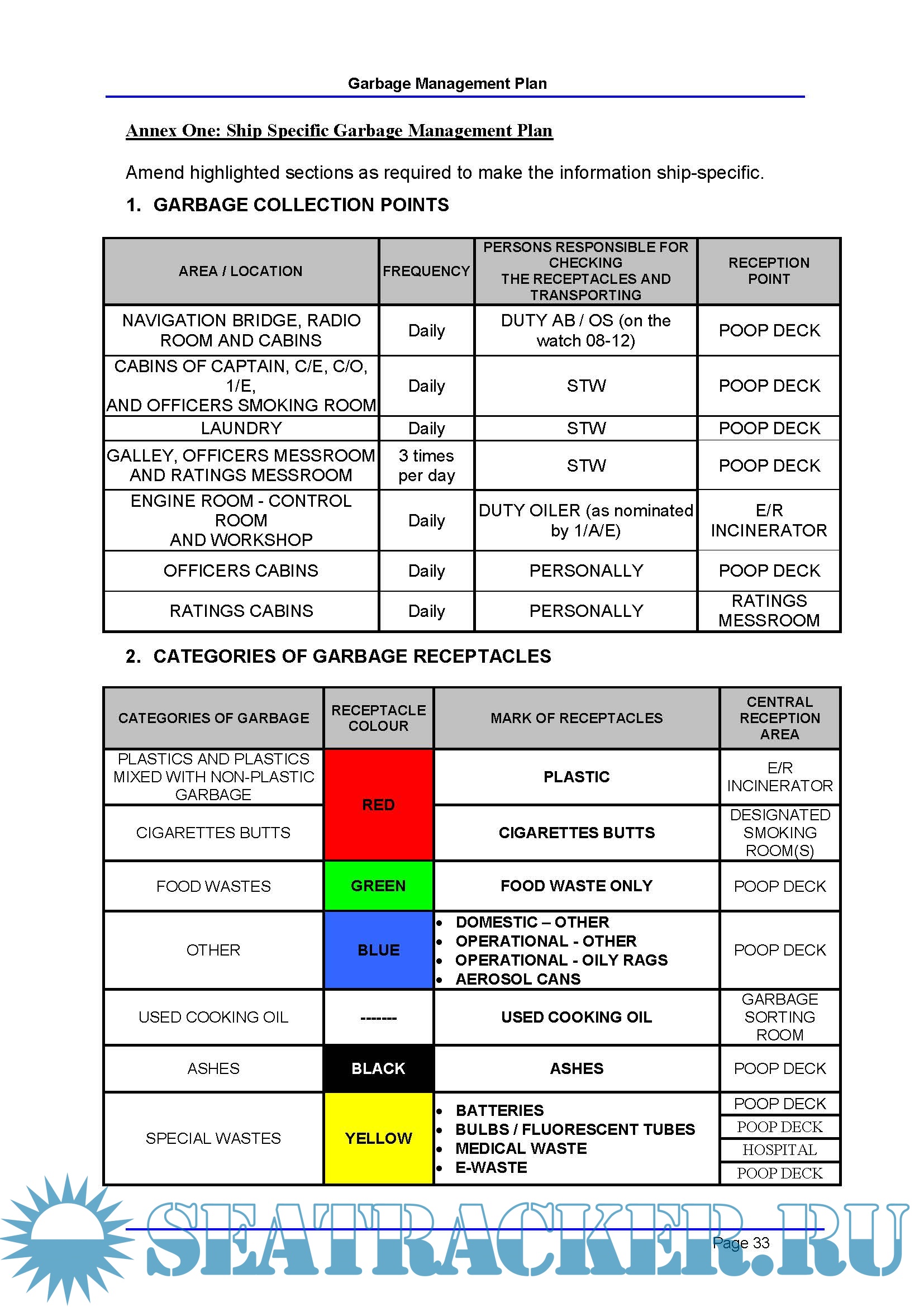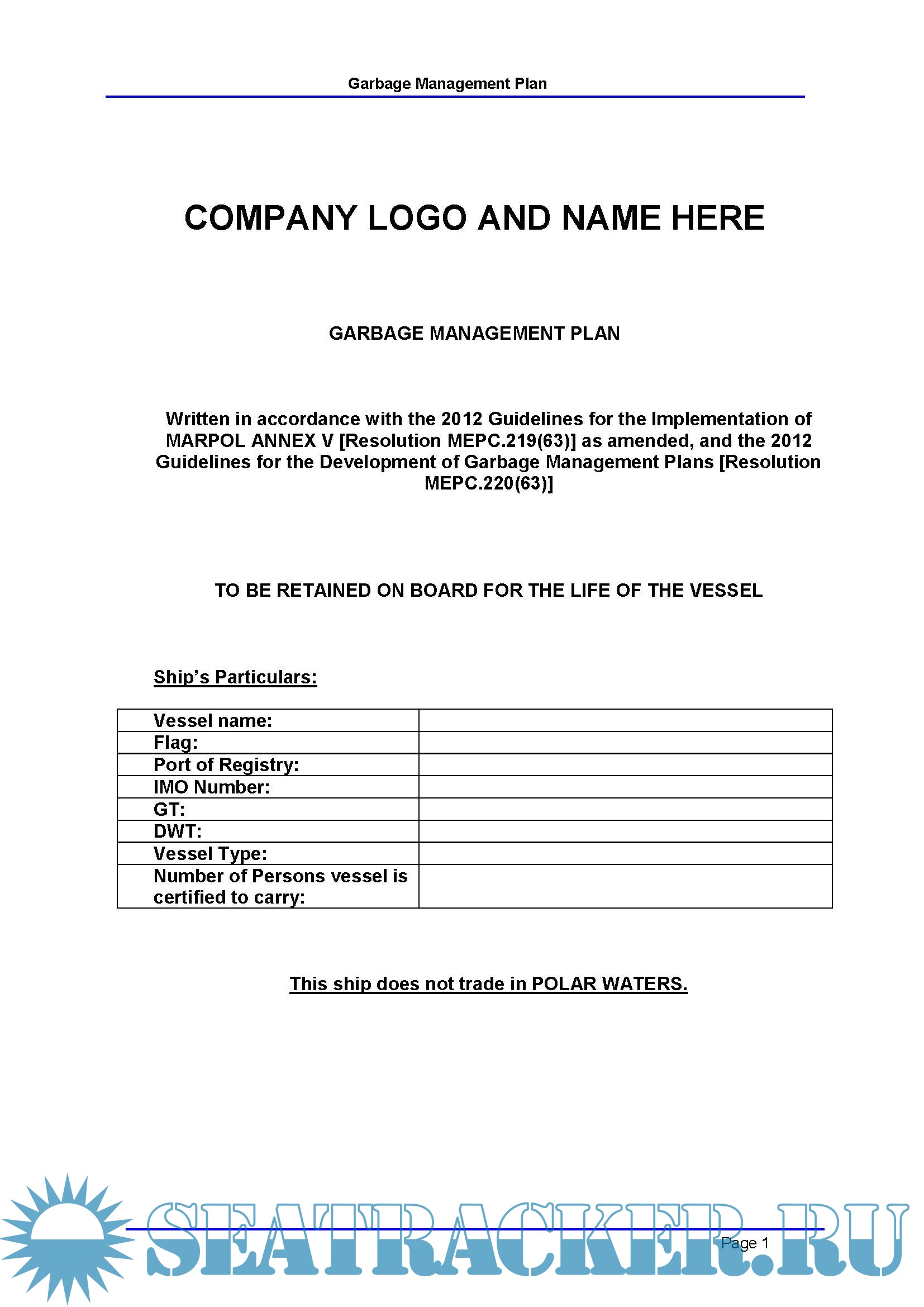 Ship's Garbage Management Plan | Company Template