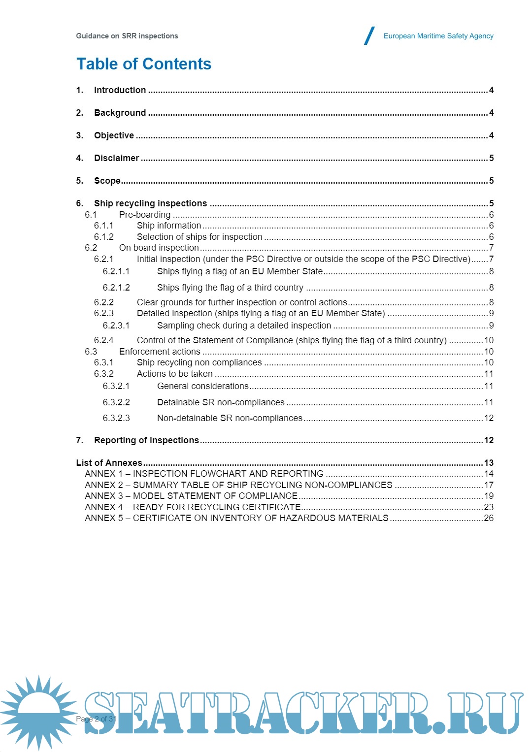 Guidance on Inspections of Ships by the Port States in Accordance with Regulation (EU) 12572013 on Ship Recycling