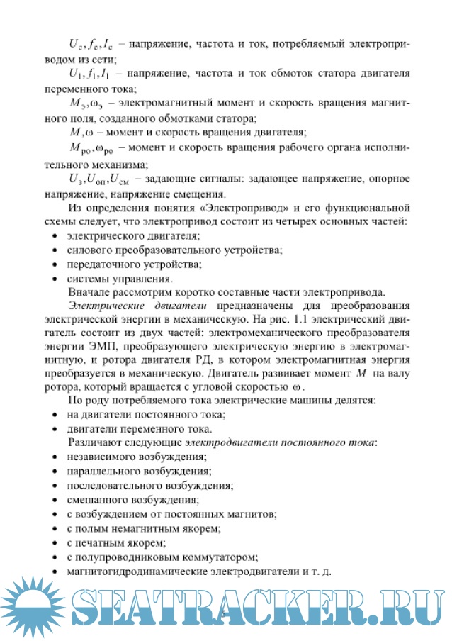 Описание: В пособии изложены основы теории электропривода. Рассматриваются принципы действия разомкнутых и замкнутых систем электроприводов постоянного и переменного тока. Представлена методика и примеры расчета параметров двигателей, статических и динамических характеристик электроприводов.