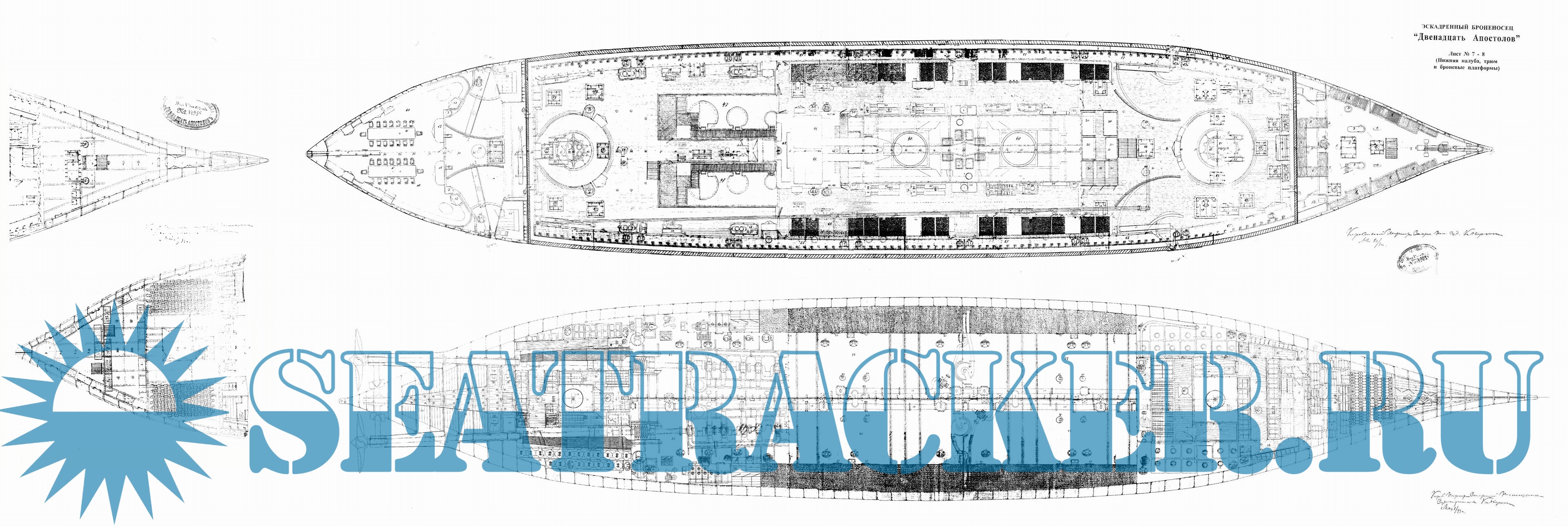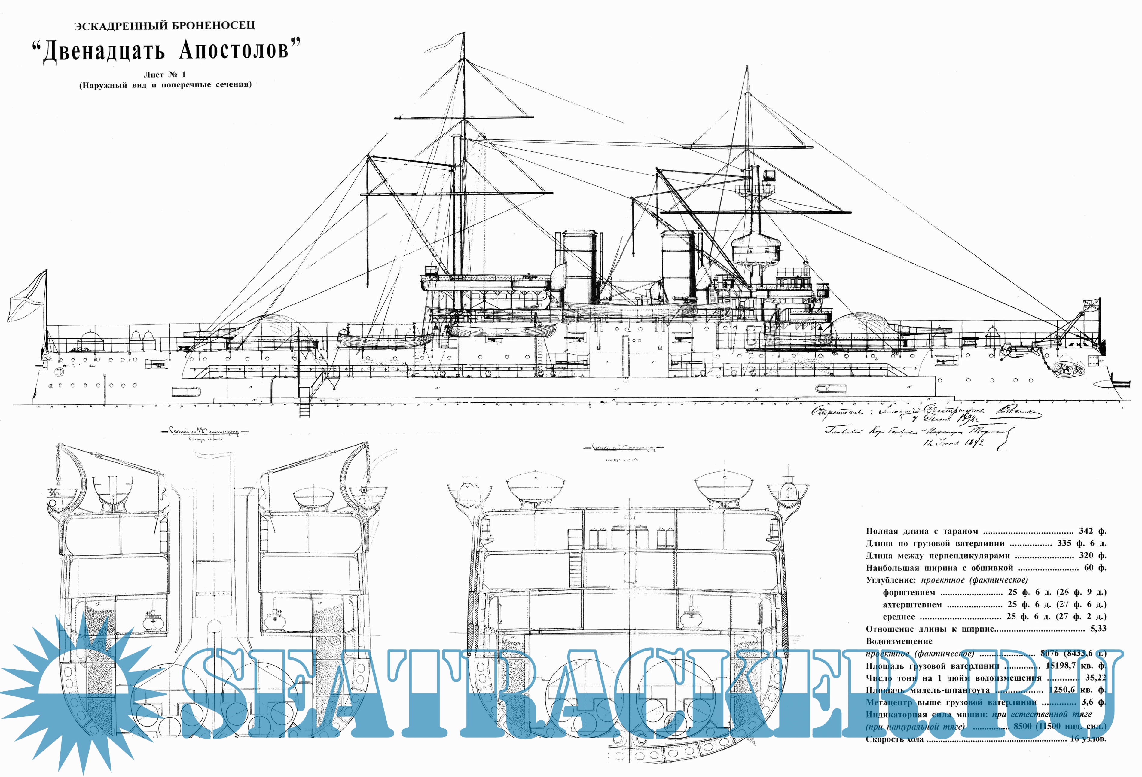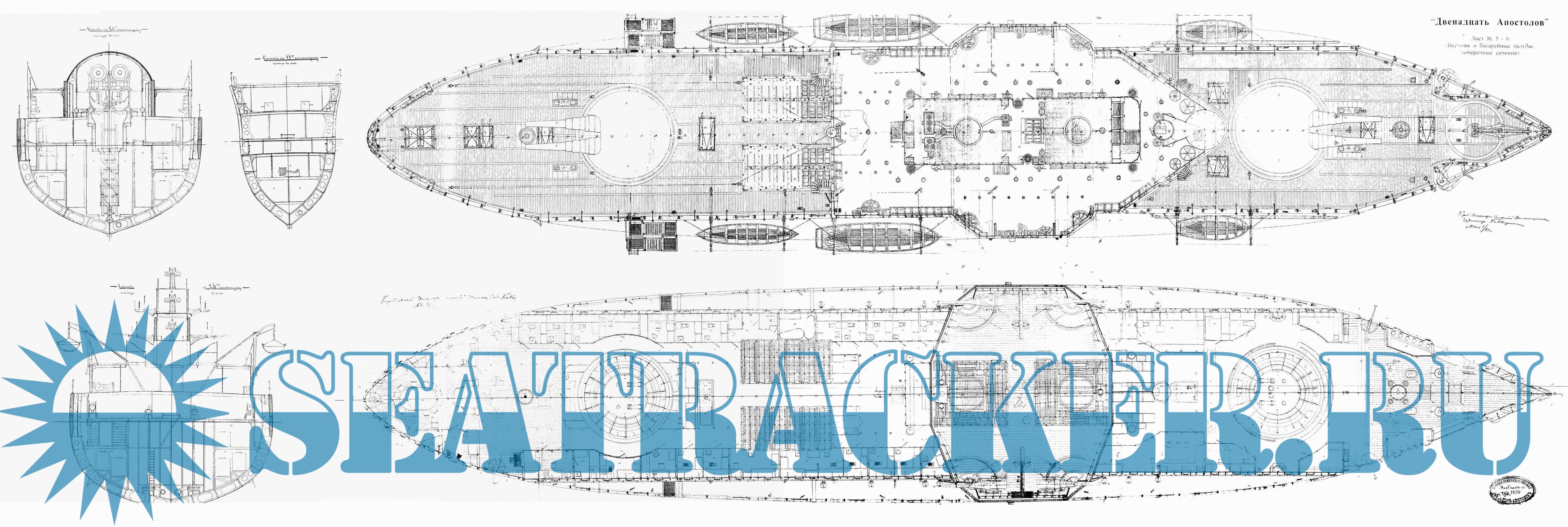Архивные чертежи эскадренного броненосца ''Двенадцать апостолов'' 1890 год -…