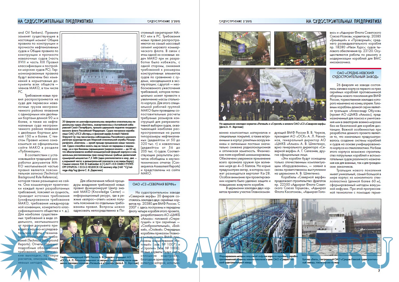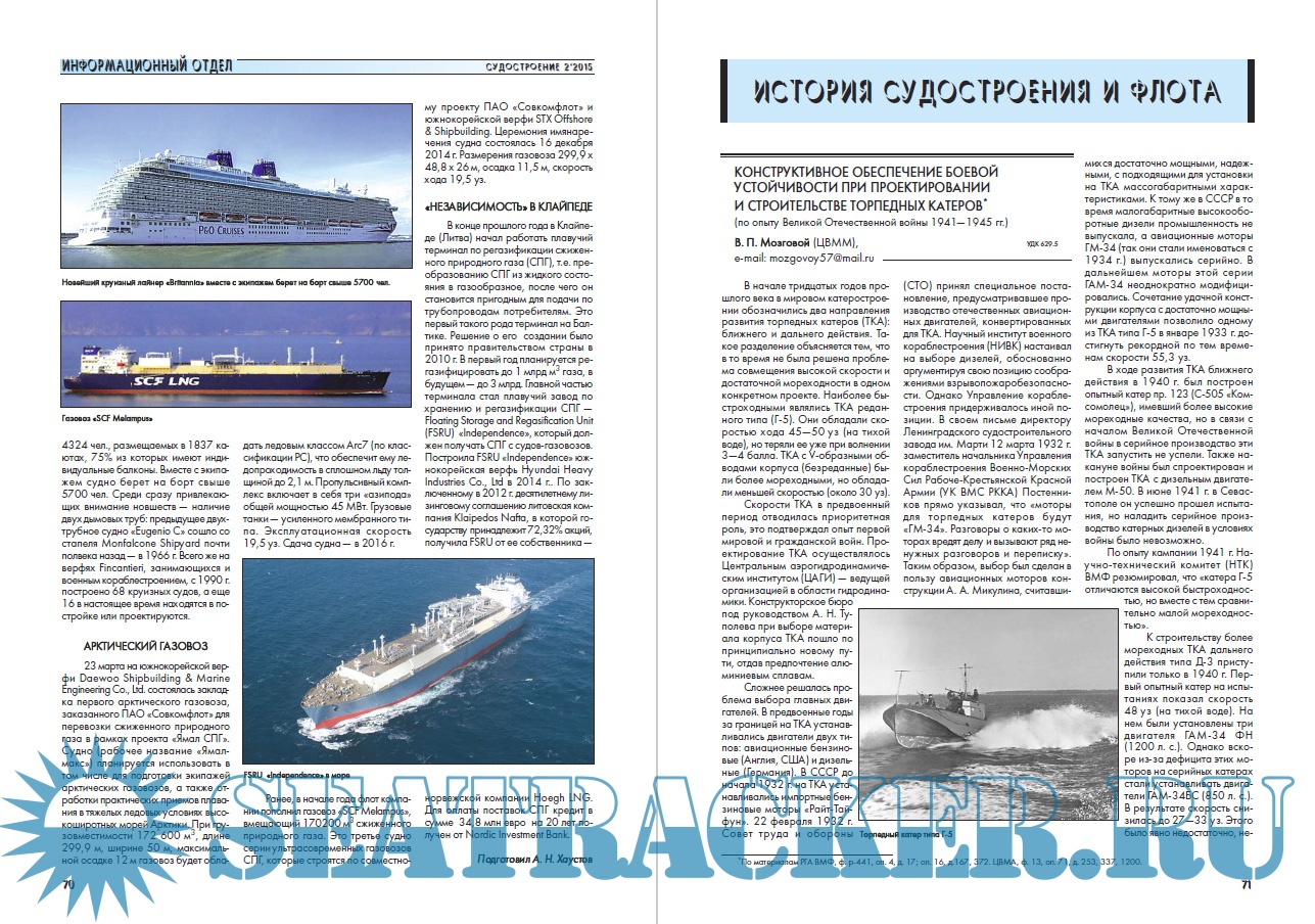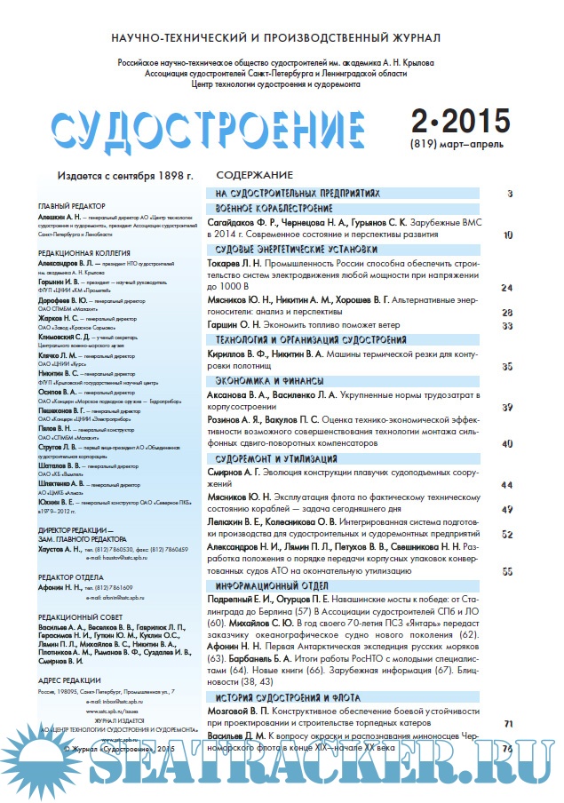 Журнал «Судостроение» №821 июль-август - Горелов В.В. (зам. главного редактора) [2015, PDF]