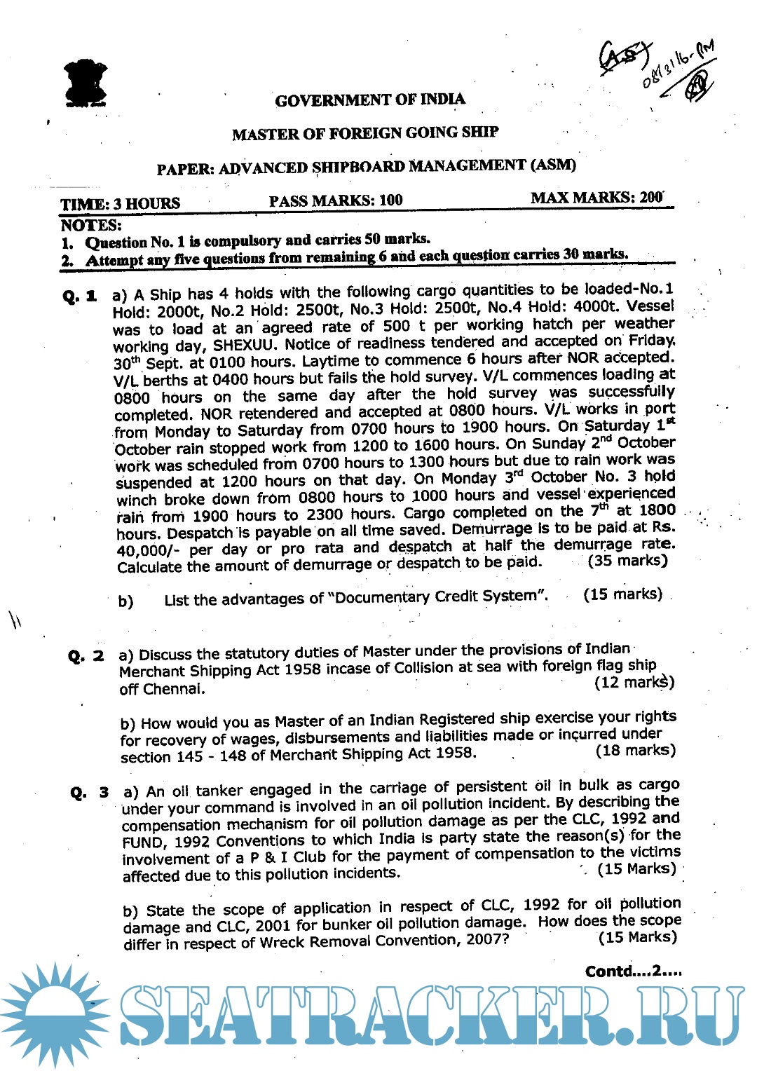 Master's examinations Question paper sets for Mercantile Marine Department (MMD), India.