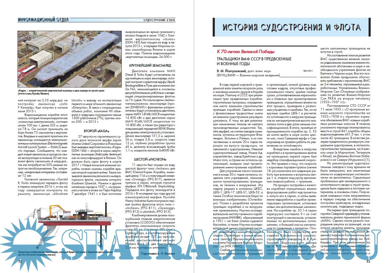 Описание: В журнале публикуются статьи ученых и специалистов на темы, связанные с проектированием, постройкой, ремонтом, модернизацией и утилизацией военных кораблей, гражданских судов. Регулярно выходят в свет работы, посвященные организации и технологии судостроительного производства, проектированию верфей и доков, новым судостроительным материалам. Большое внимание уделяется вопросам судовой энергетики и новым разработкам в области морской техники.