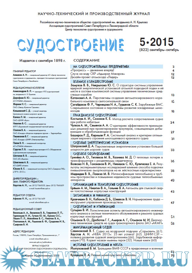 Журнал «Судостроение» №822 сентябрь-октябрь