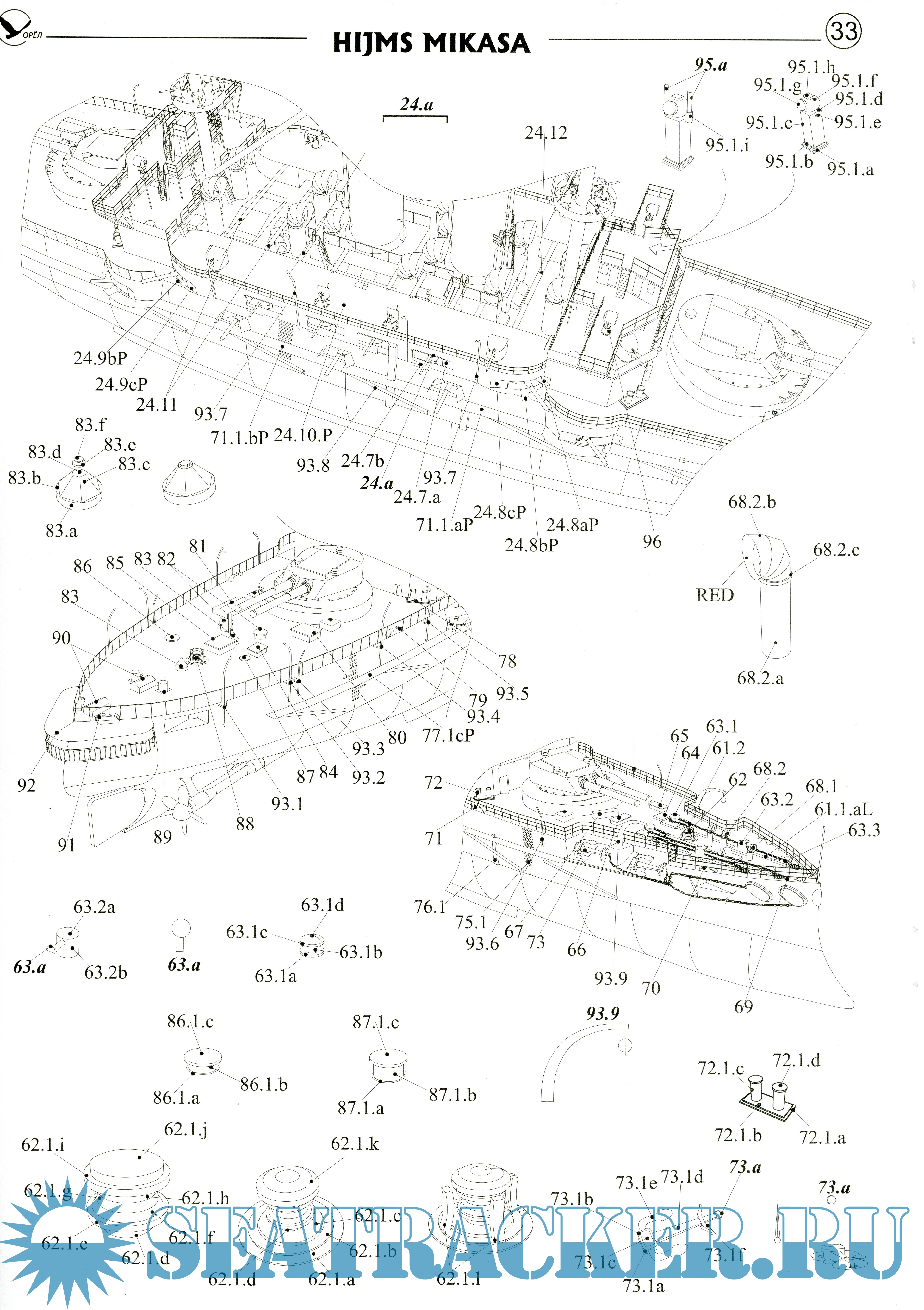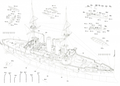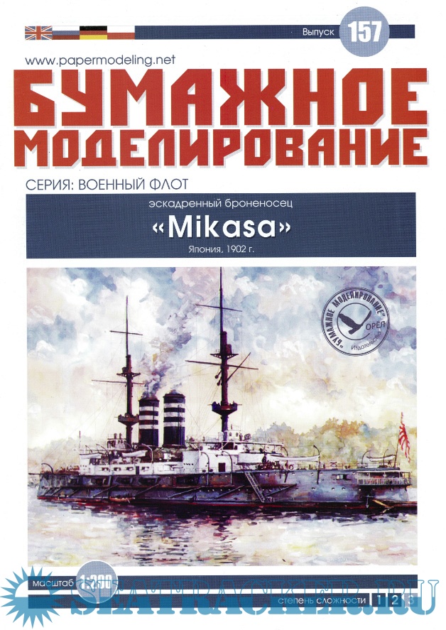 Описание: 48 листов цветных выкроек и инструкций для изготовления бумажной модели эскадренного броненосца MIKASA Япония 1902 год в масштабе 1:200