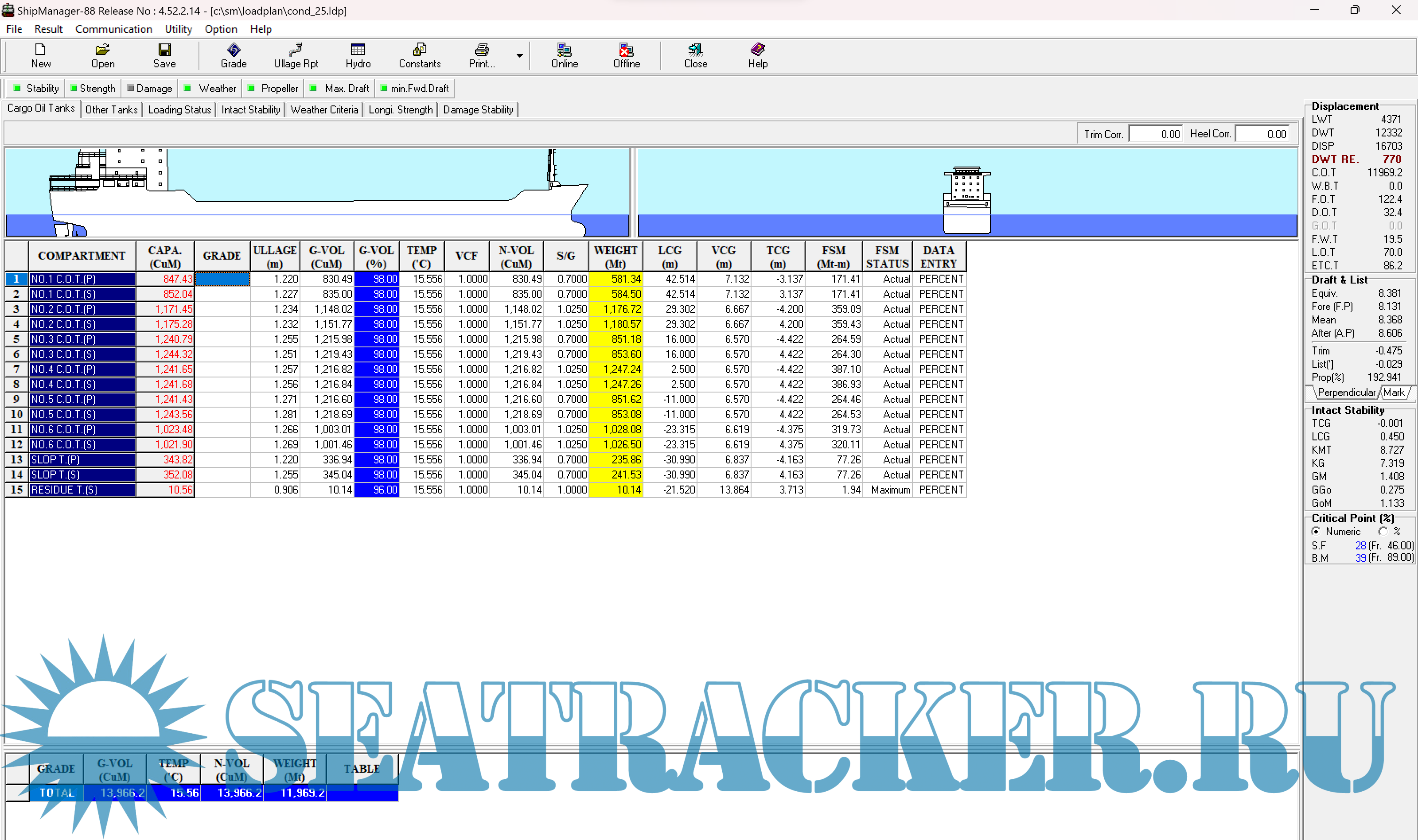 LoadPlus - Loading computer application for 8300 DWT Oil/Chemical Tanker v.1.0.0 build 2347 - HANLA…