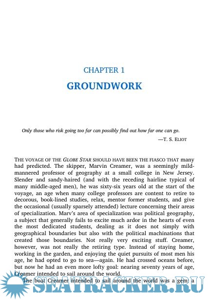 Travel with Creamer as Globe Star sails around the perilous Horn, across the dangerous and tumultuous Tasman Sea, and into an active war zone. Sail around the world with a man who was taken prisoner by an idea, a man obsessed with proving a point, and who would let neither 40-foot waves nor fractious crewmembers deter him.
