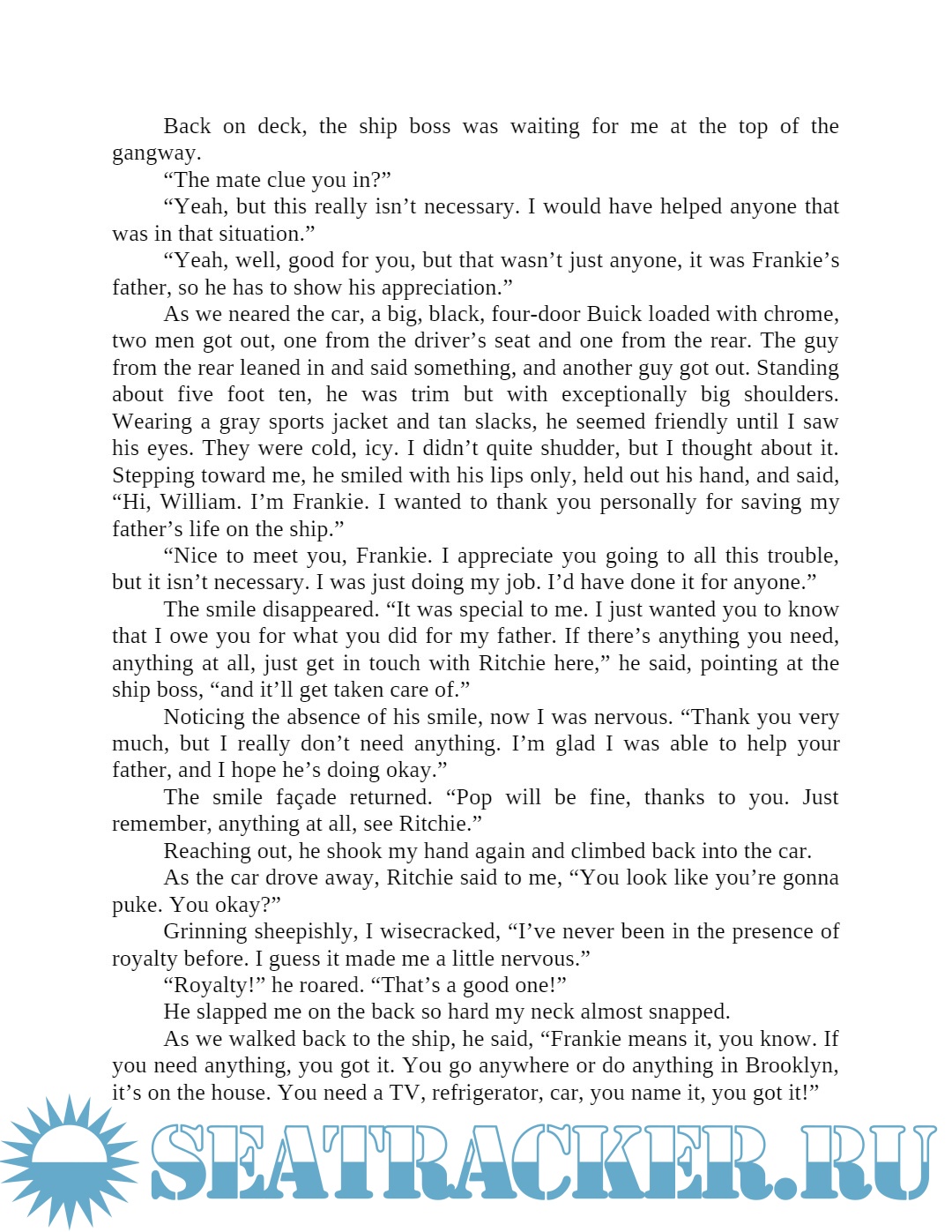 The story follows the ship's travels from New York City into U. S. East coast ports down through the East Coast of South America, racing through the Great Lakes ending in Brooklyn, NY in an unusual and violent way.