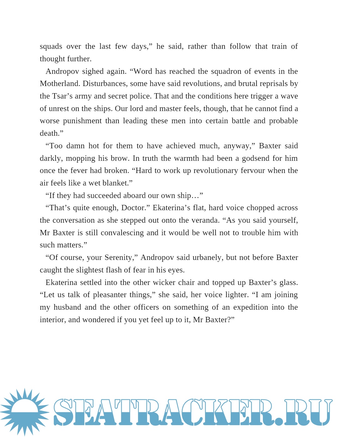 As the journey unfolds, Baxter discovers that not all of the crewmembers are who they claim to be – including Russian aristocrats, revolutionary Marxists and mutineers – and with a traitor in their midst, can anyone be trusted?