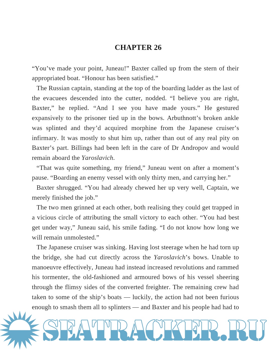 Accompanied by young Tommy Dunbar, desperate to earn his sea legs, Baxter is betrayed by the crew and captured by a Russian cruiser, the Yaroslavich, where both he and Tommy are held captive in an attempt to avoid escalating tension with Britain.