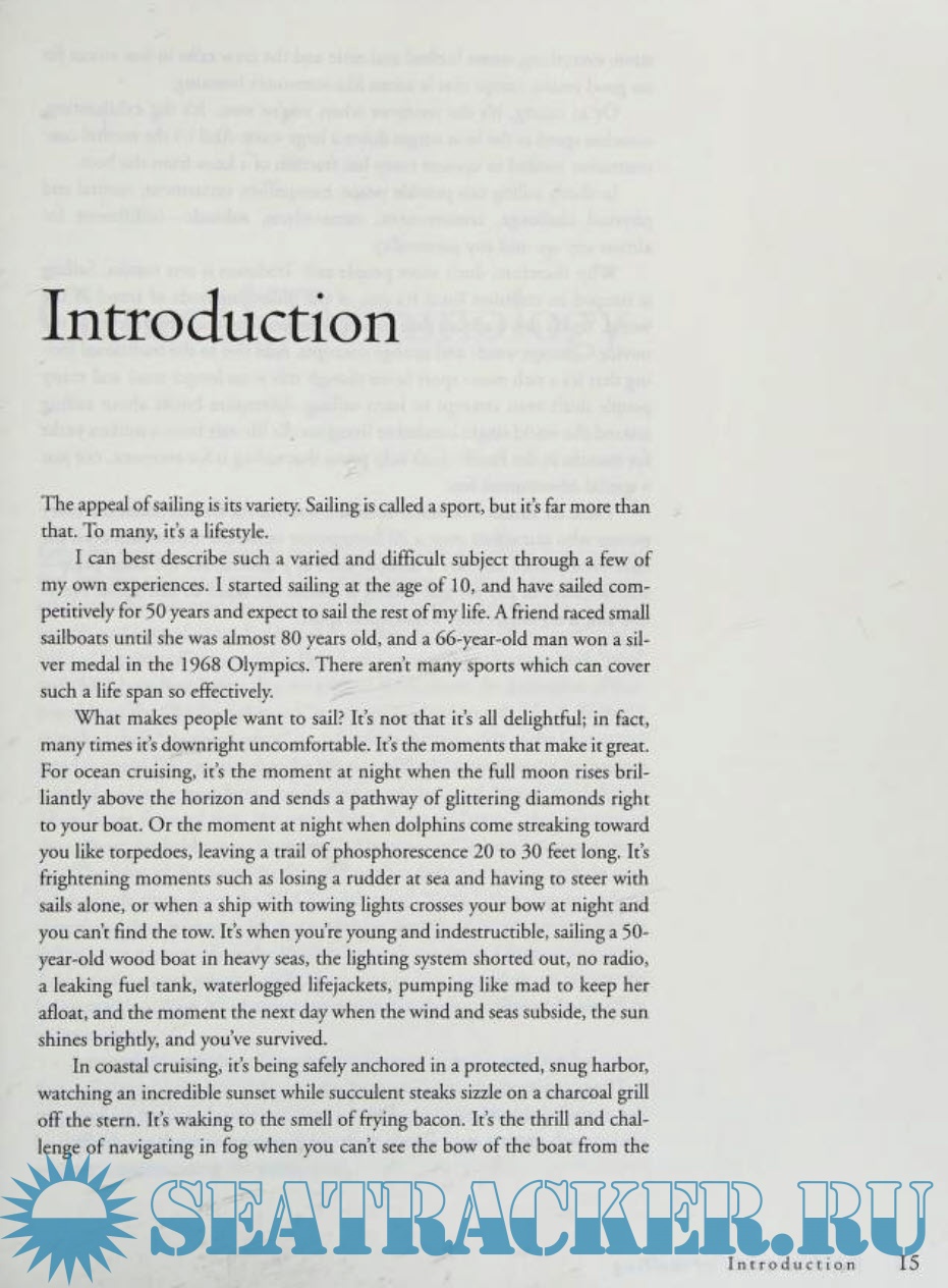 Year: 1996 Language: English Author: Steve Colgate Genre: Reference book Publisher: W. W. NORTON & COMPANY, INC Edition: Second ISBN: 978-0393038118 Format: PDF Quality: Scanned pages Pages count: 384 Description: For all sailors―novices and experienced racers alike―the acclaimed primer on sailing, cruising, and racing. Stephen Colgate, the founder and president of the Offshore Sailing School, removes the mystery of sailing and reduces the techniques to basic, simple principles. He instructs the reader on all matters from how sails work under various conditions to night sailing and piloting, tactical problems and heavy-weather racing, emergencies, safety, boat control, and all other fundamentals. This edition contains the latest technological advances in equipment, and the newest rules, regulations, and strategies that are critical to safe and pleasurable time on the water. The result is a superior resource that is an absolute must for all sailors.