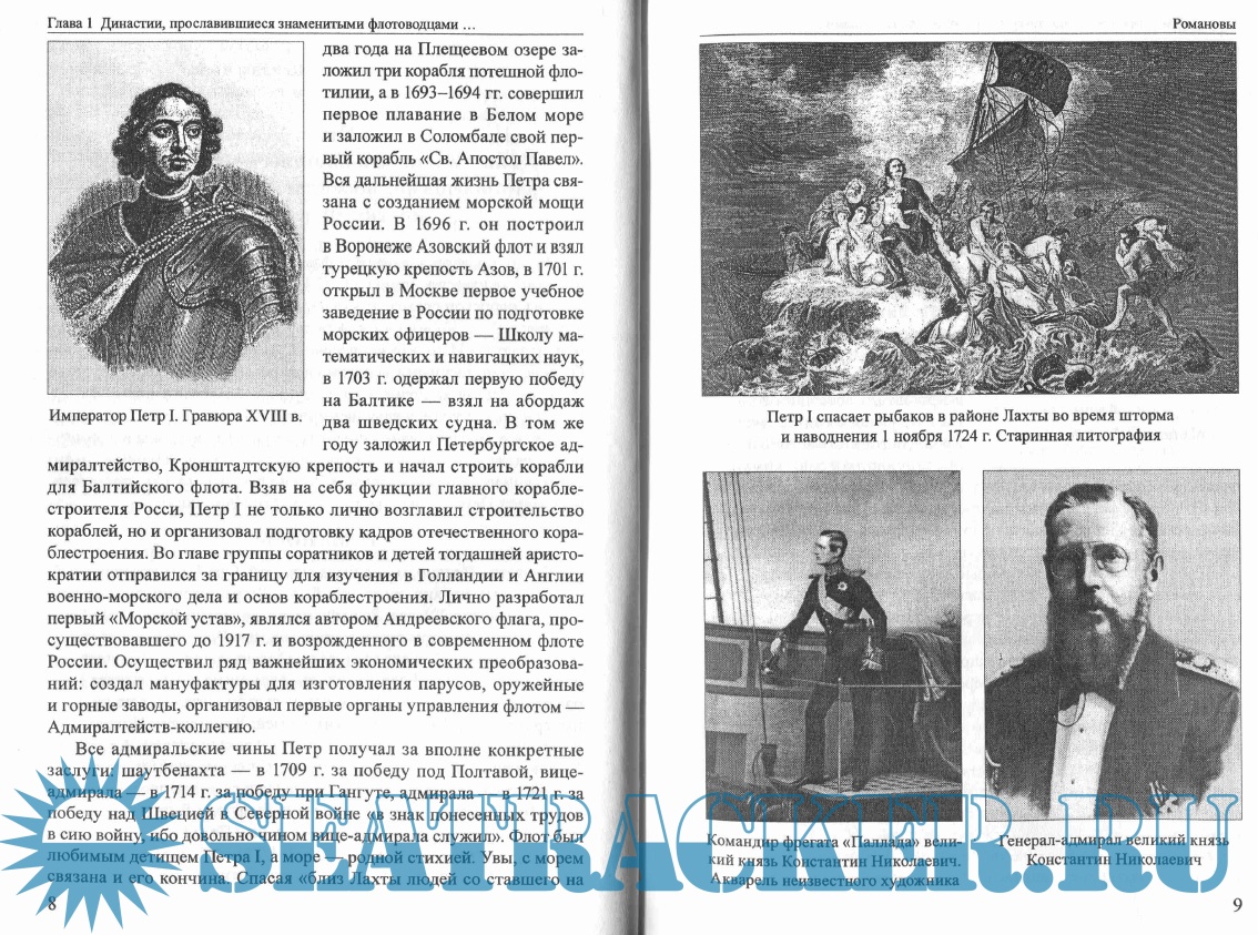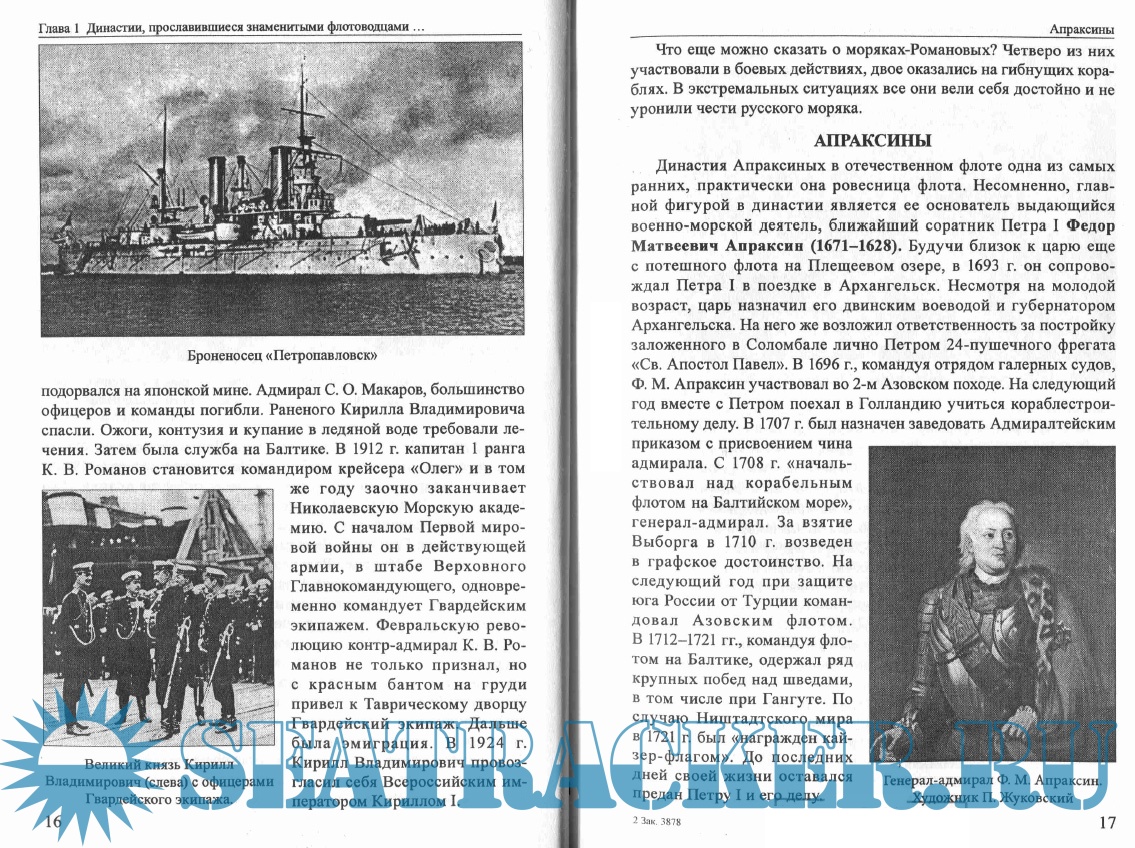 Год выпуска: 2011 Язык: русский Автор: Юрий Коршунов Жанр: История Формат: PDF Качество: Отсканированные страницы Количество страниц: 318 Описание: Книга контр-адмирала Ю.Л.Коршунова - это книга о морских династиях России, о семьях, в которых профессия военного моряка стала традицией, передающейся от отца к сыну, от сына к внуку. В ней приведены биографии более чем пятисот адмиралов, генералов и офицеров отечественного флота. В большинстве случаев они публикуются впервые. Главная цель книги - рассказать о патриотизме русского морского офицерства, о его беззаветной преданности Родине и верности своей профессии.