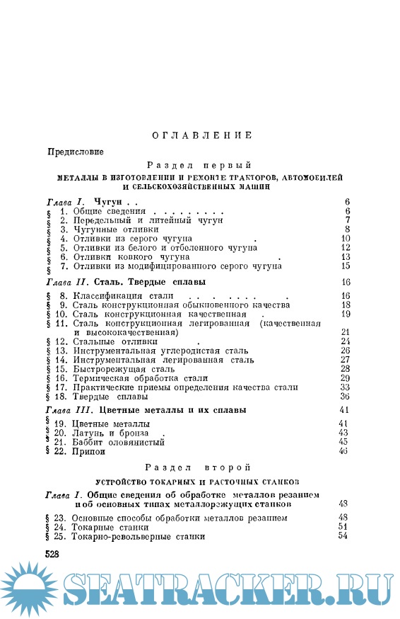 Описание: В книге приведены сведения об основных материалах, применяемых при изготовлении и восстановлении деталей тракторов, автомобилей, комбайнов и других сельскохозяйственных машин; описано устройство токарных станков и работа на них; даны основные сведения об устройстве и работе расточных станков; рассмотрены основные вопросы процесса резания металлов, допусков и измерений; изложены способы скоростного резания и методы работы токарей-скоростников.