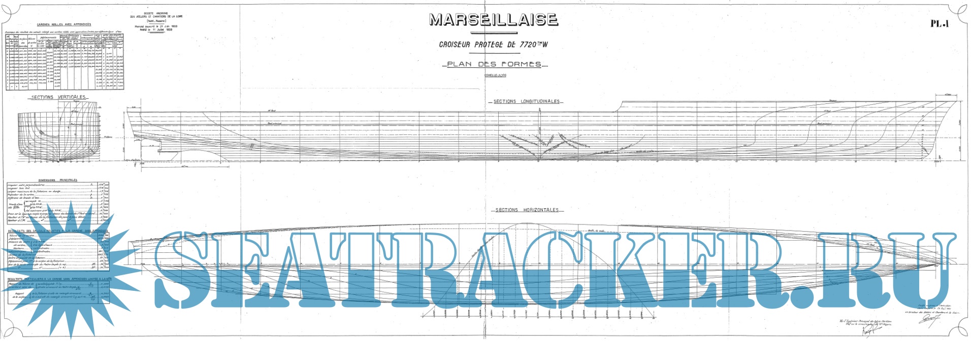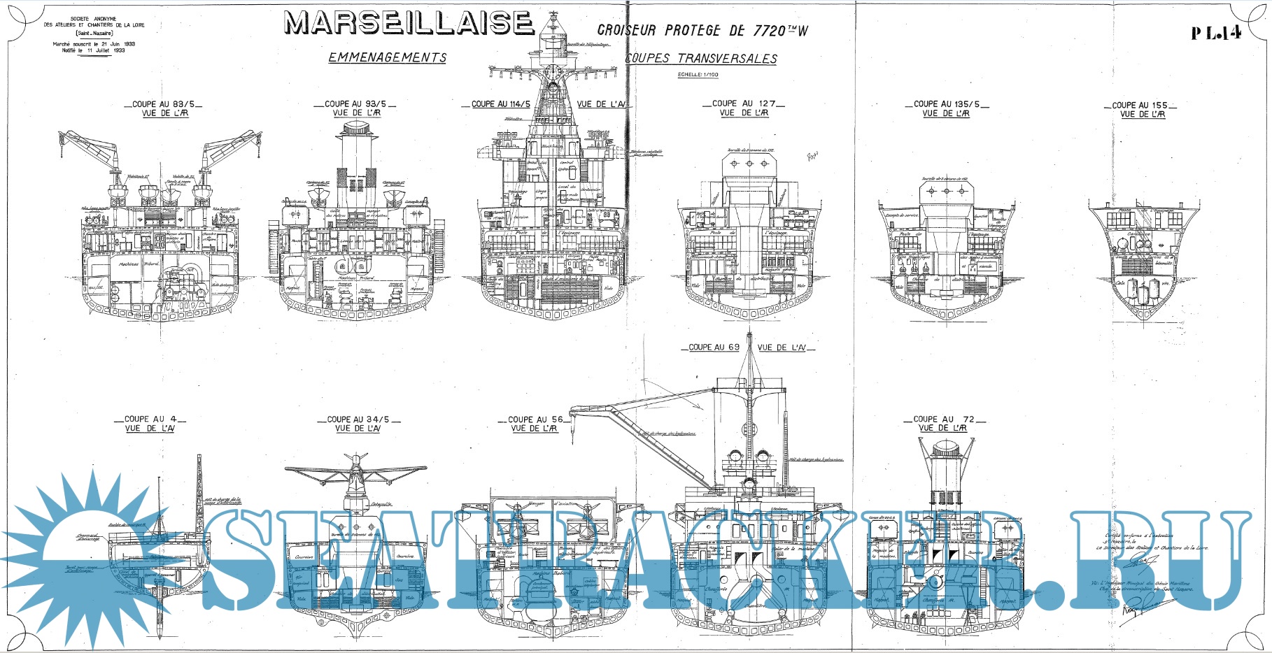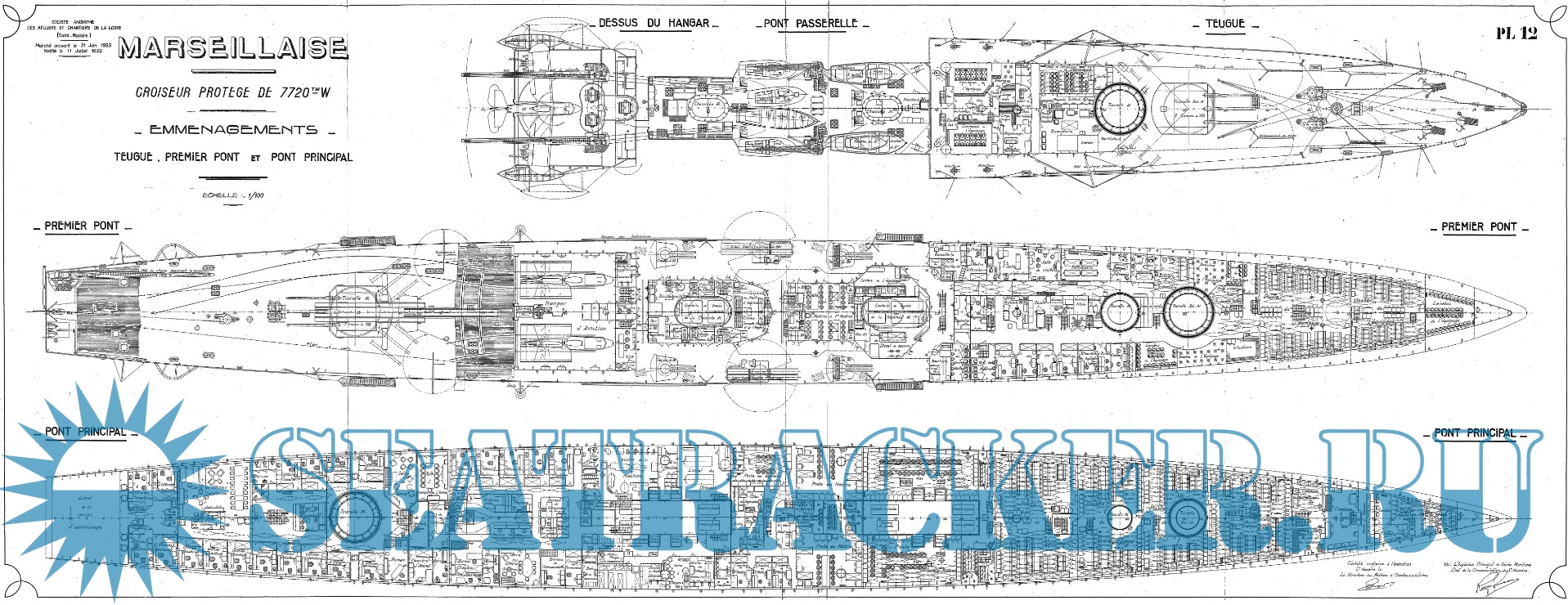 Архивные чертежи крейсера MARSEILLAISE (Франция)1935 год