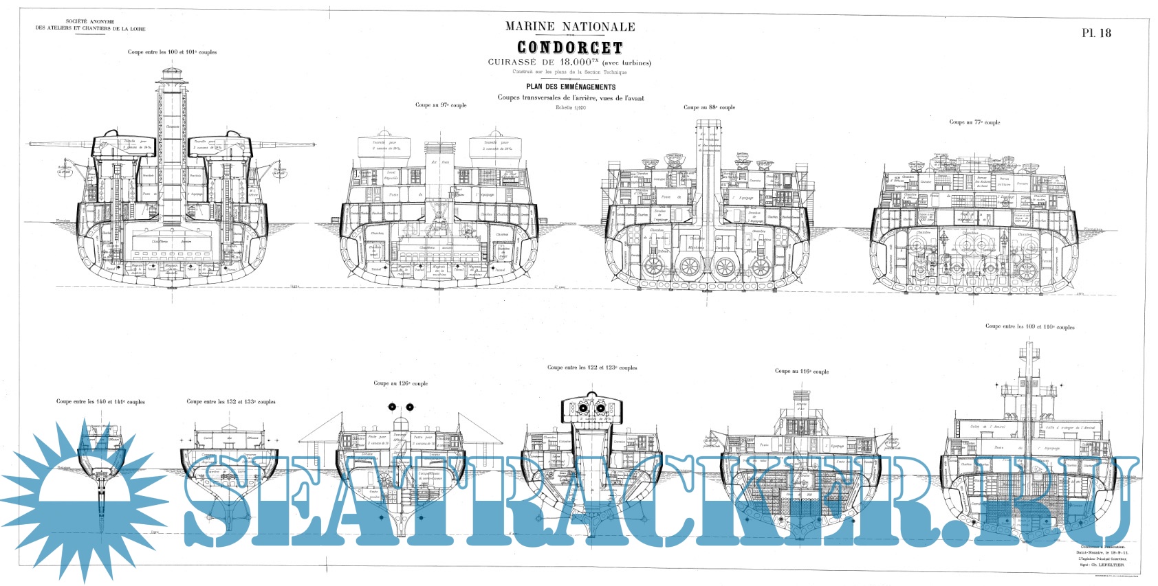 Архивные чертежи эскадренного броненосца CONDORCET (Франция) 1909 год