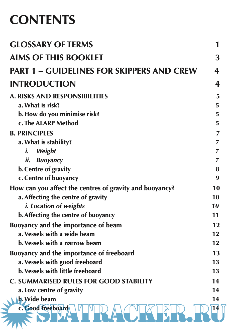 It is written in two sections. Part 1 is aimed at everyone, from the crew member to the skipper, the owner and anyone involved in the management and operation of the vessel. It provides simple information on the basics of stability, the risks and hazards and what action you can take to ensure the vessel stays safe.