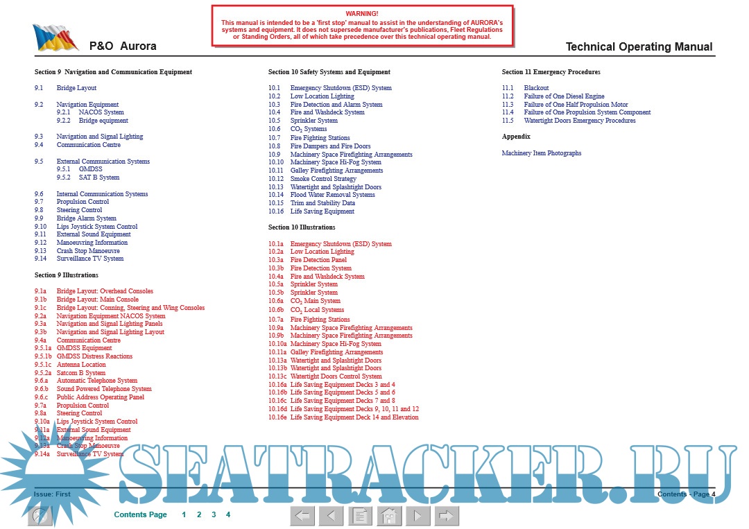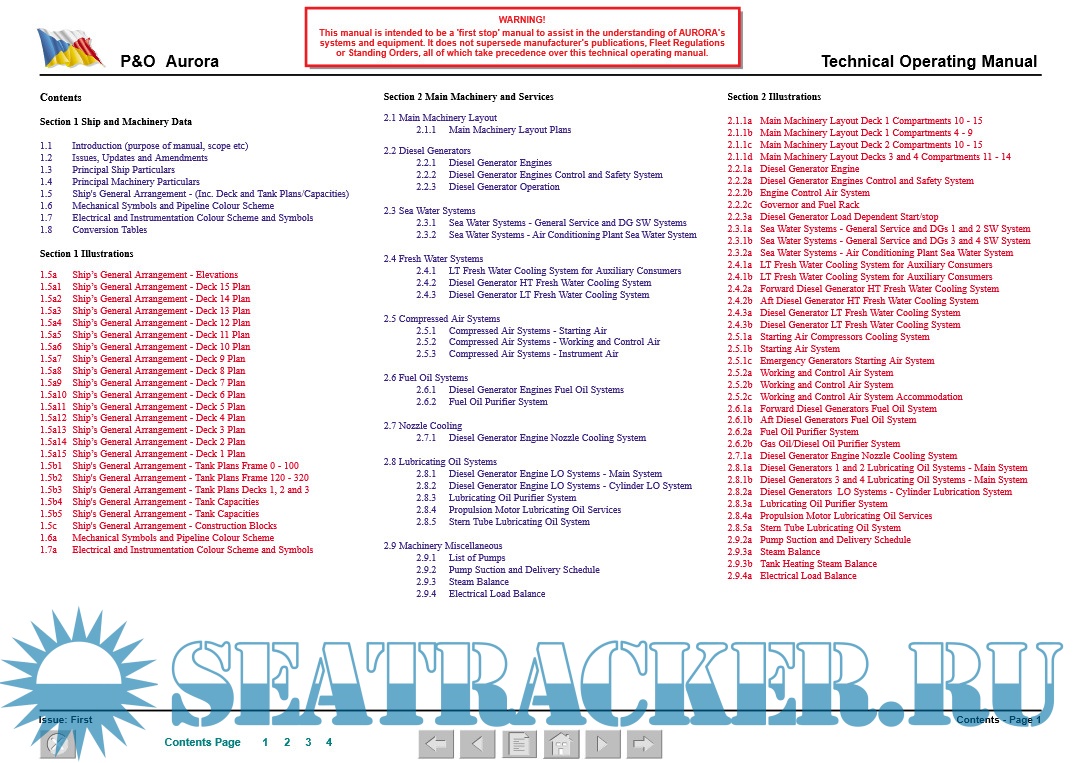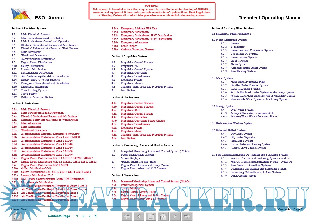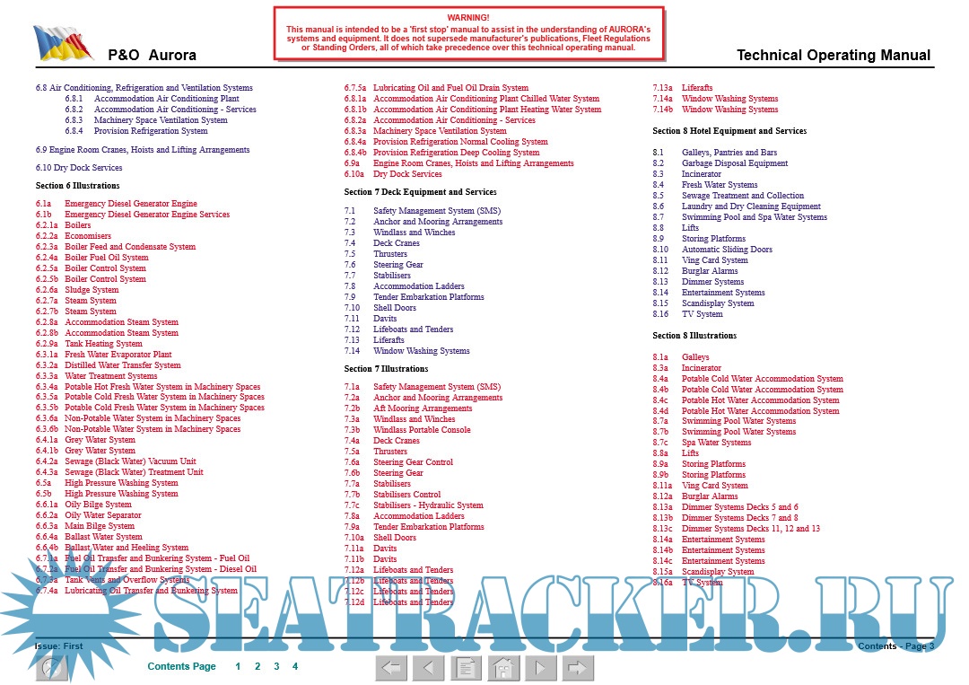 The manual also details the ship’s systems, providing a technical description, system capacities and ratings, control and alarm settings (where practicable) and operating details.