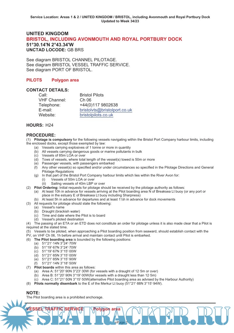 • Vessel Traffic Service information, contact details and procedures
