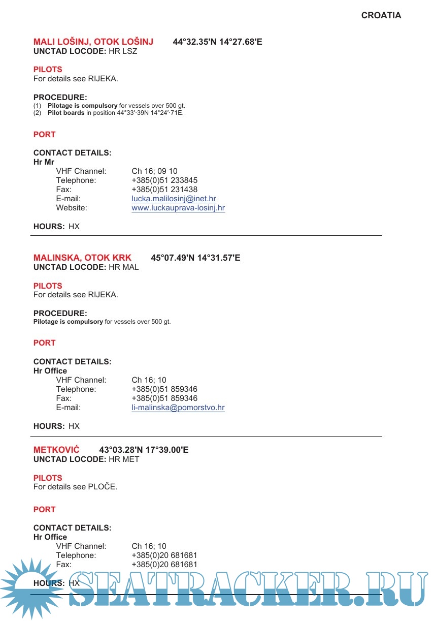 • Port information, contact details and procedures