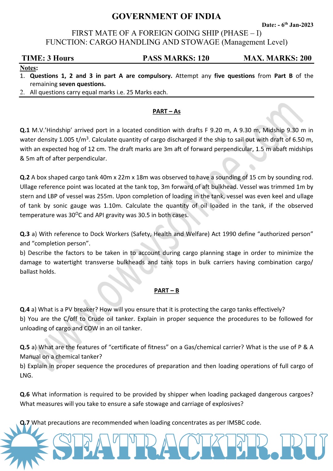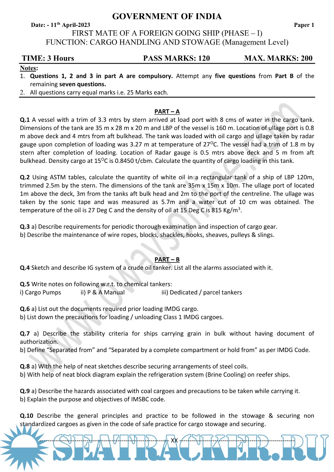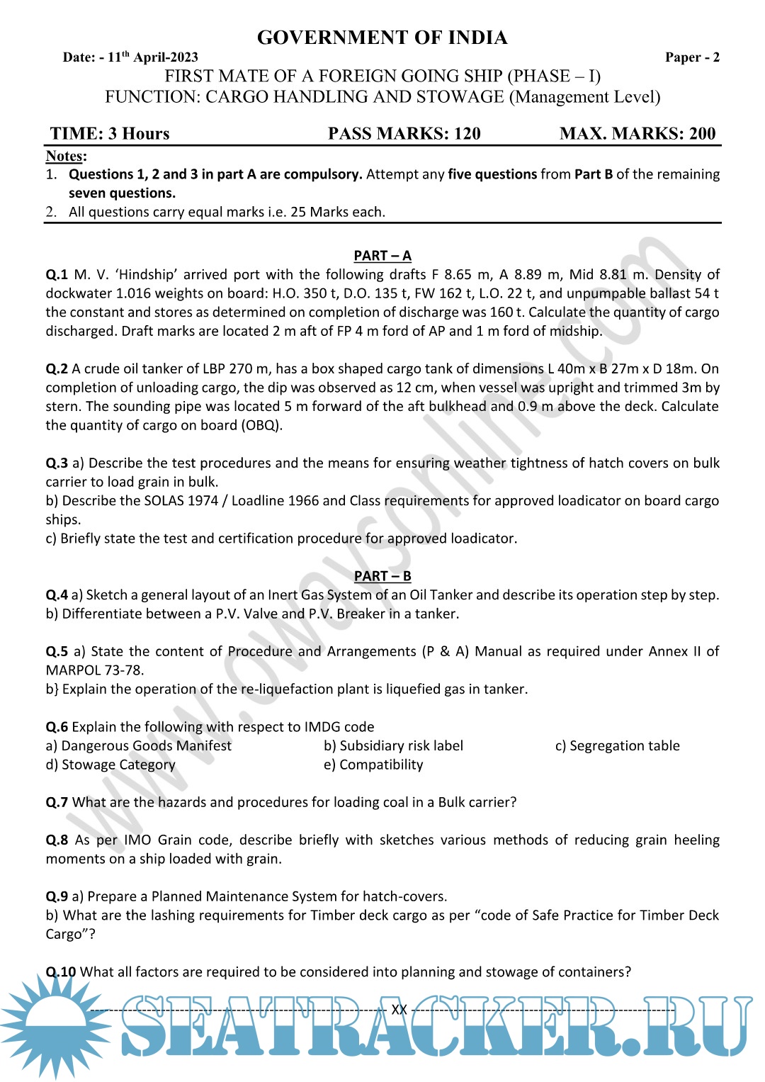 Cargo MMD Question Paper