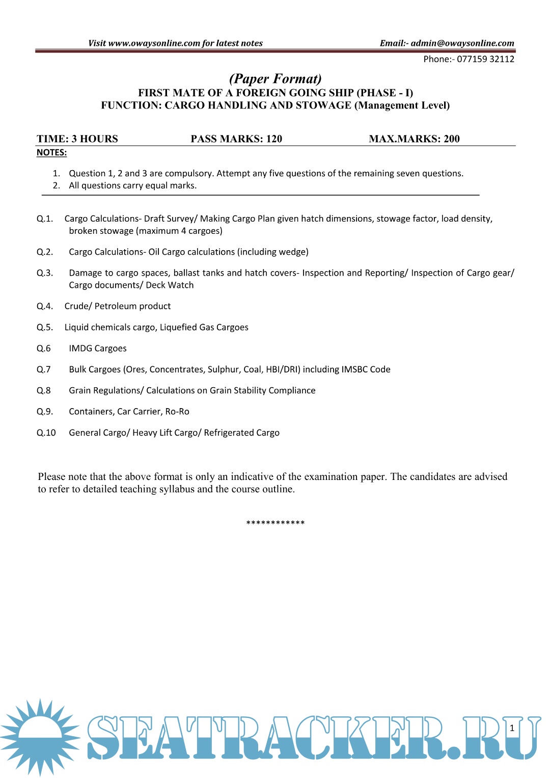Description: Cargo Chief Mate Ph 1 QP Till April 2023