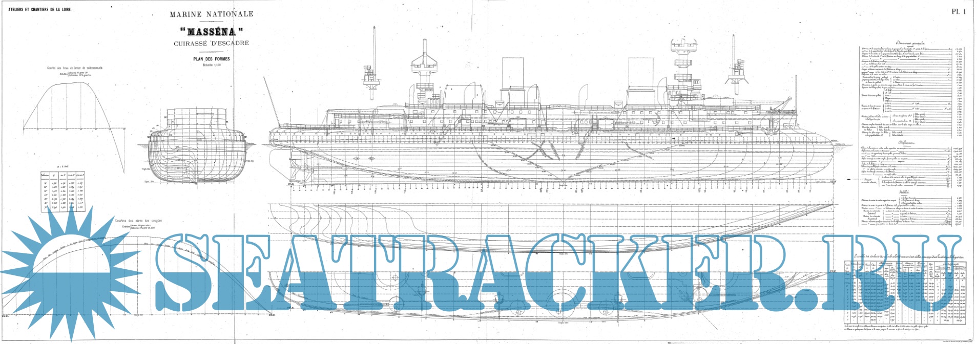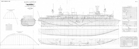 Архивные чертежи эскадренного броненосца MASSENA (Франция) 1898 год