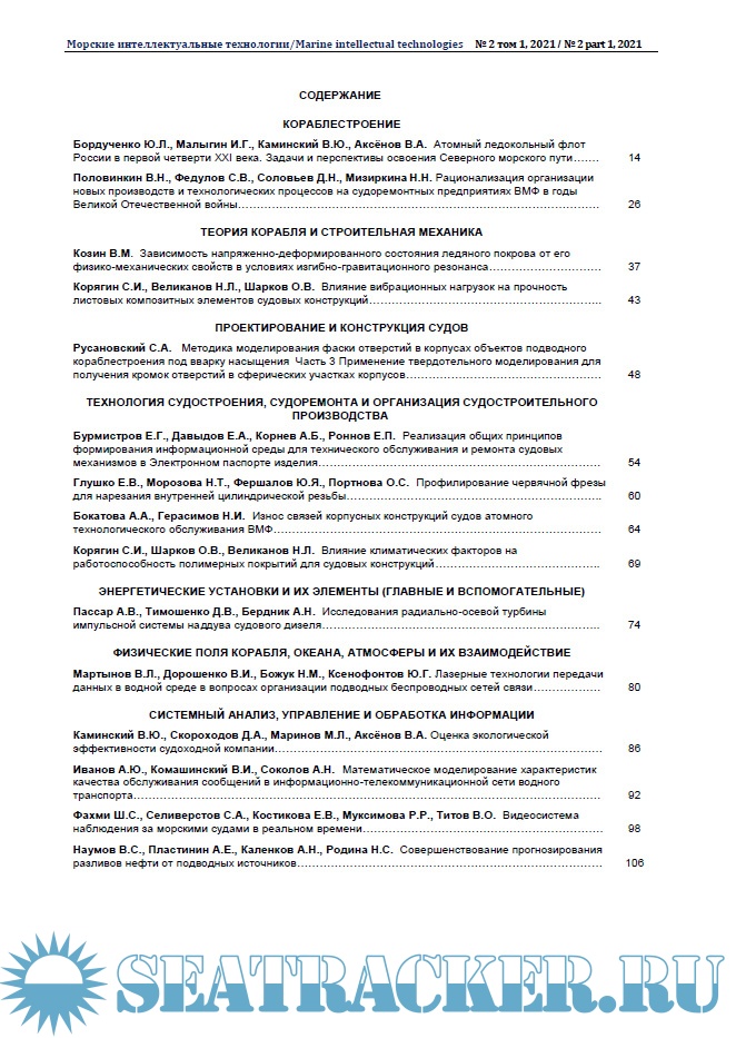 Морские интеллектуальные технологии 2021 № 2 Tом 1