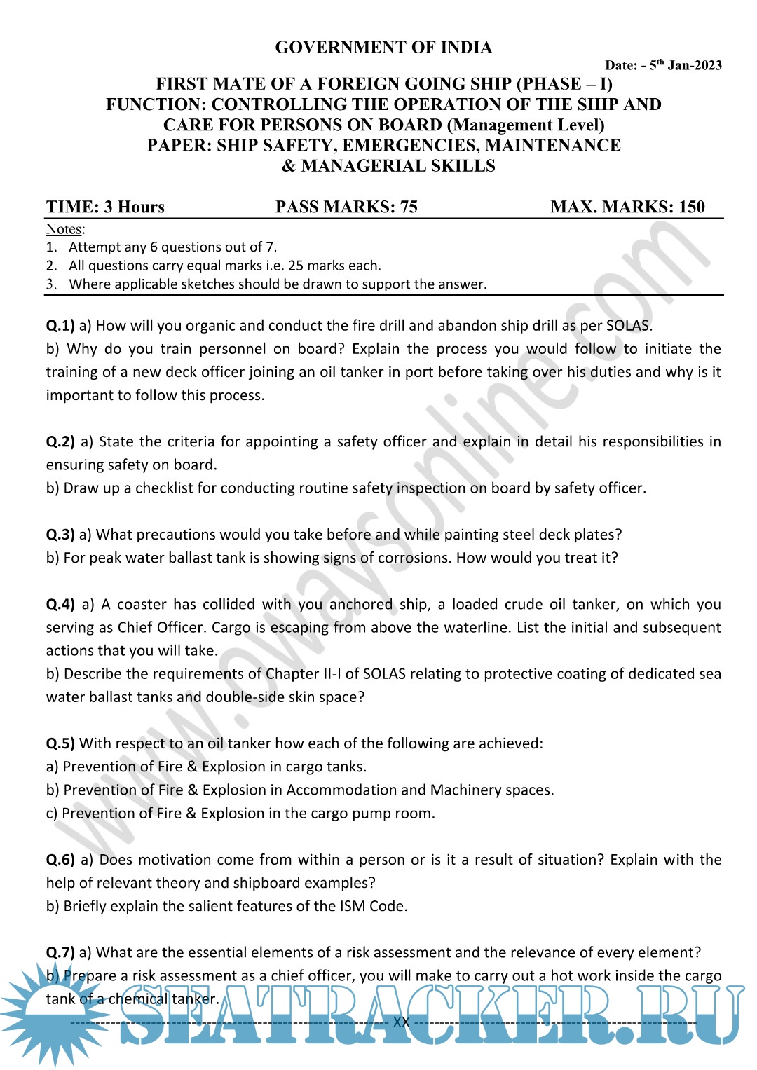 Description: Safety MMD Question Paper till April 2023