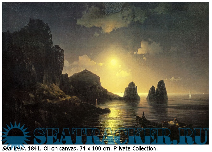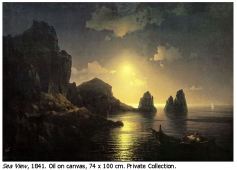 Description: The seascapes of Ivan Aivazovsky (1817-1900) made his name in Russia, his native country where he was a painter of the court of Nicholas I, yet his fame barely extended beyond these borders. Master of the Sublime, he made the ocean the principal subject of his work. Sometimes wild and raging, sometimes calm and peaceful, the life of the ocean is composed of as many allegories as the human condition. Like Turner, whom he knew and whose art he admired, he never painted outside in nature, nor did he make preliminary sketches; hispaintings were the fruit of his exceptional memory. With more than 6,000 canvasses, Aivazovsky was one of the most prolific painters of his time.