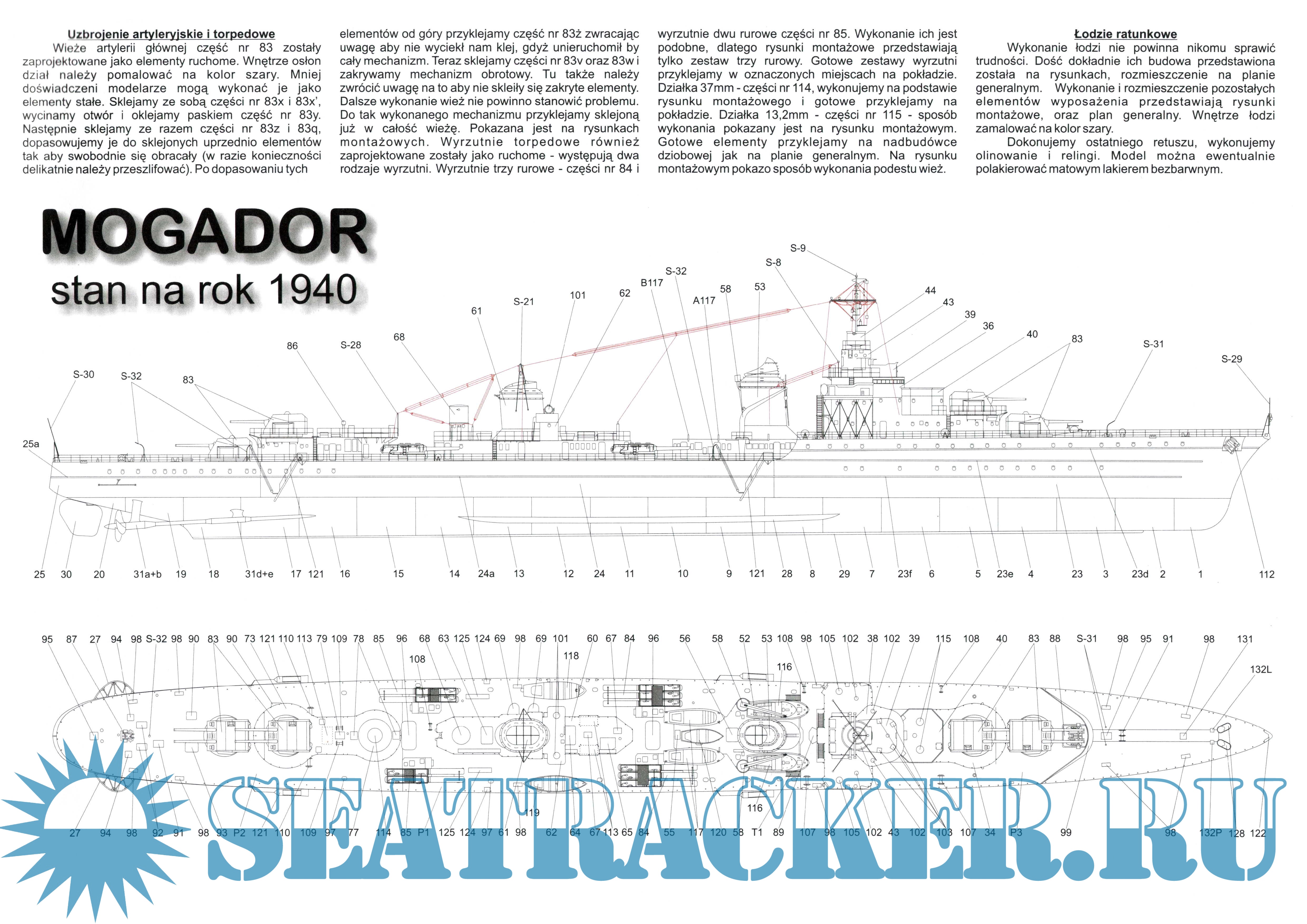 14 листов цветных выкроек и инструкций для изготовления бумажной модели французского эскадренного миноносца ''Mogador'' в масштабе 1:200Скриншоты