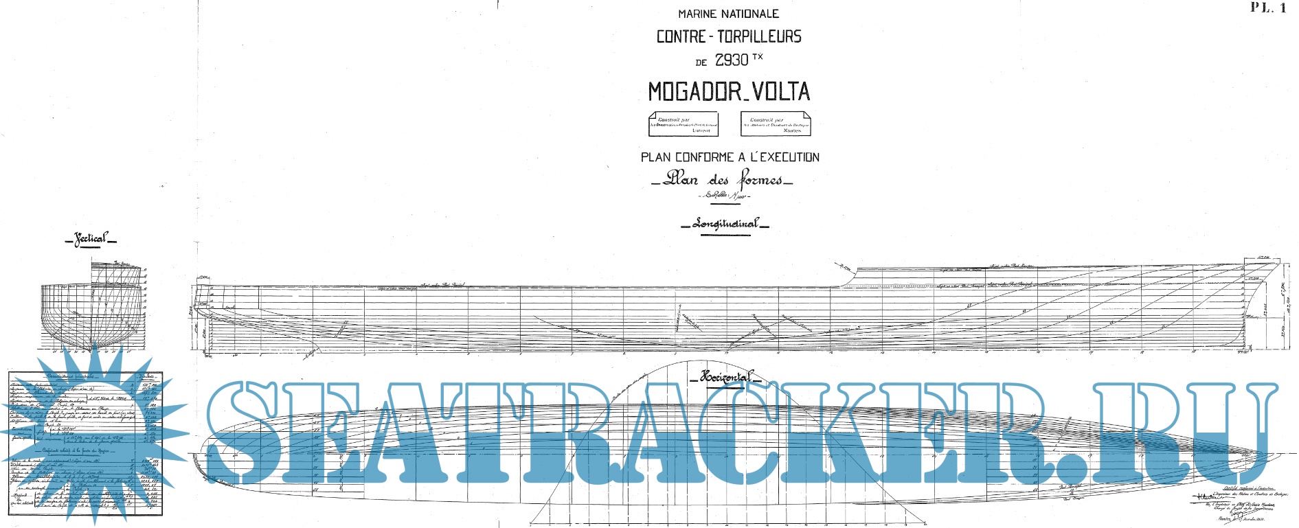 Архивные чертежи эскадренного миноносца "MOGADOR" (Франция) 1937 год