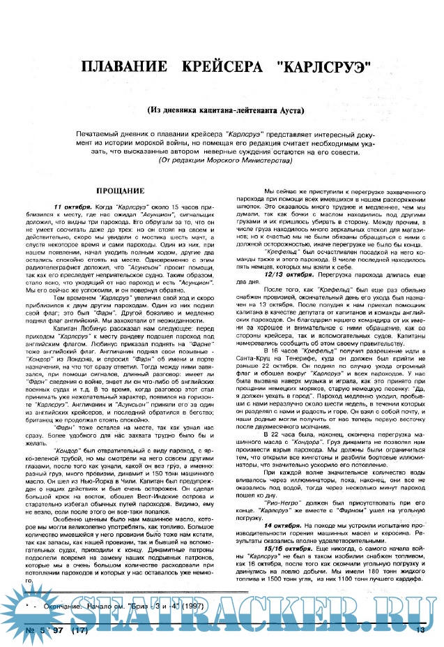 Год выпуска: 1997 Язык: русский Автор: Печуконис Н.И., Аликин А.Б.(редакторы) Жанр: Периодическое издание (журнал) Издание: 1997-05 Формат: PDF Качество: Отсканированные страницы Количество страниц: 42 Описание: Сборник статей по истории флота