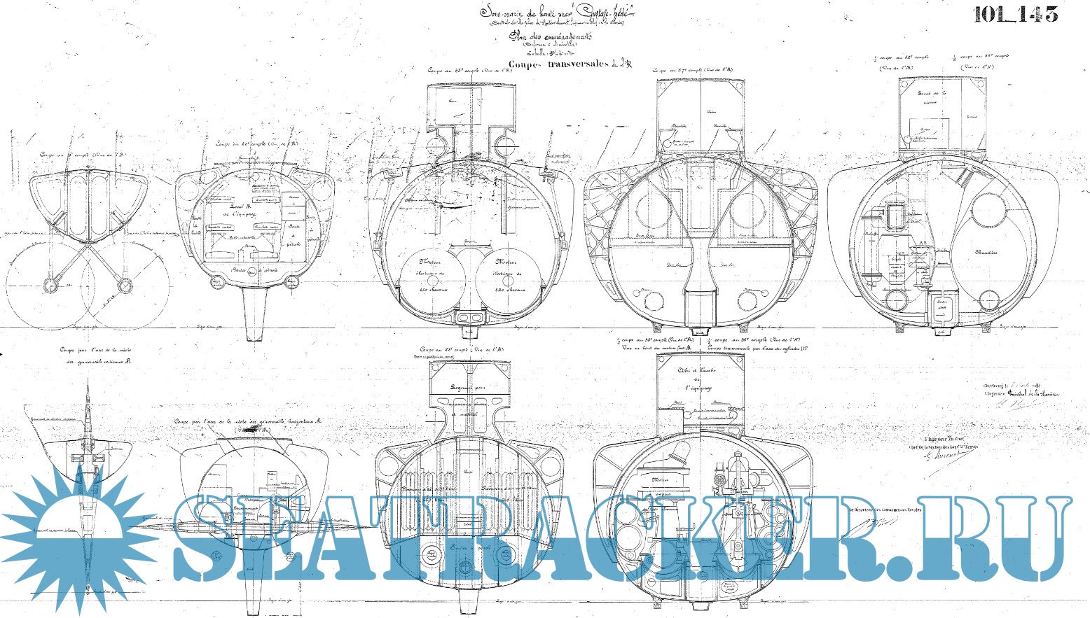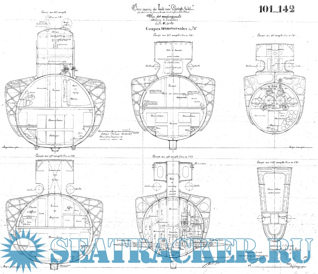 Архивные чертежи французской подводной лодки ''GUSTAVE ZEDE'' 1913 год