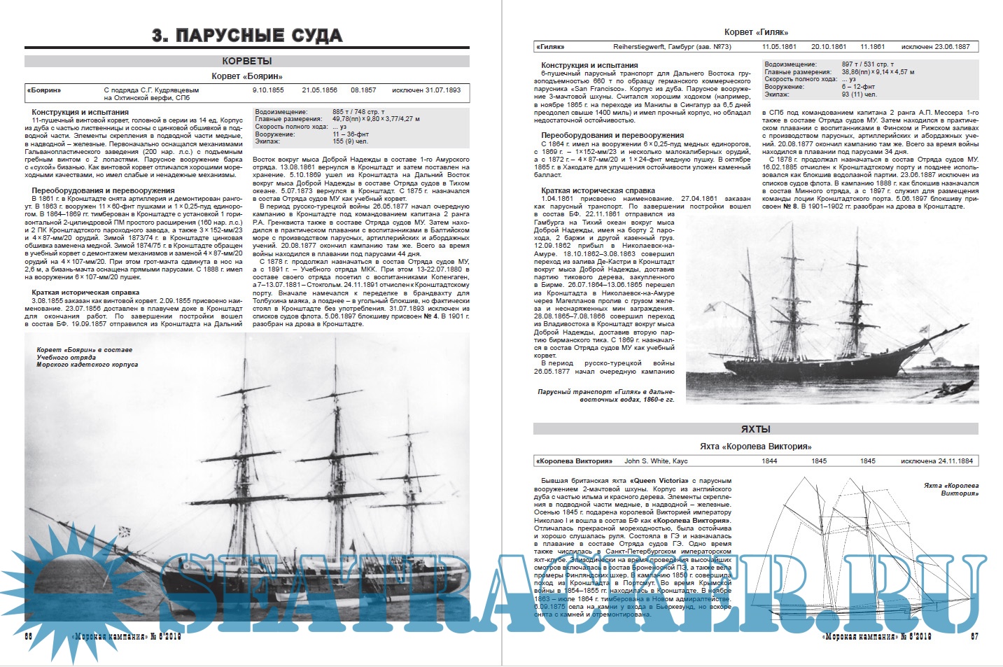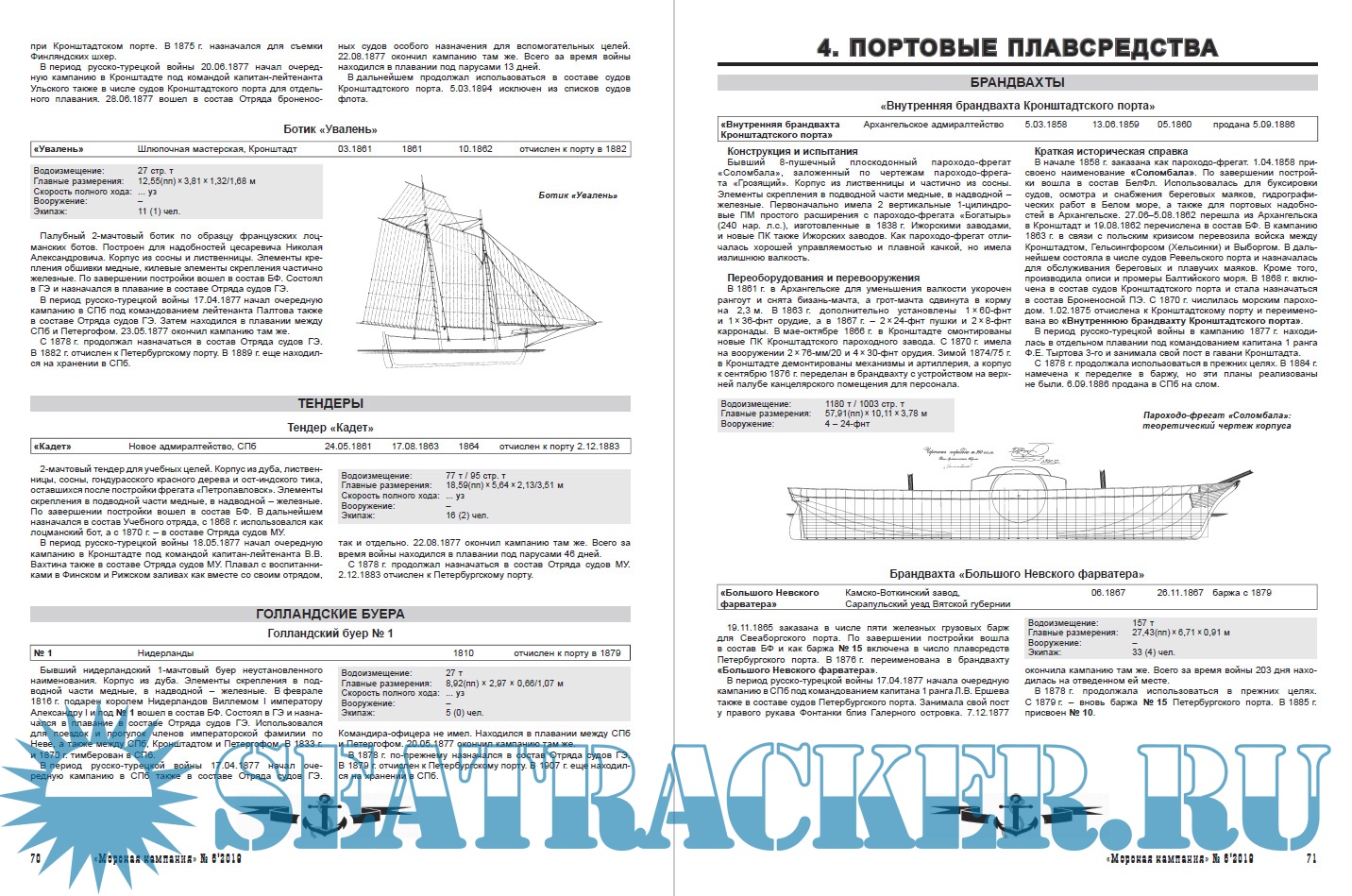 «Броненосные суда», «Паровые суда», «Парусные суда» и «Портовые плавсредства», где рассматриваются соответствующие корабли и суда, состоявшие в списках