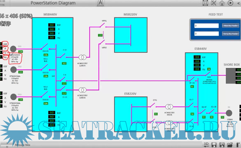 The actual turbine ship and experimental system include automated engine room, automated power station, host remote control, monitoring and alarm, ship network, air-conditioning refrigeration, seawater desalination, viscosity control, cooling water temperature control, oil mist concentration detection, valve remote control, high-pressure and low-voltage simulated power stations, etc.