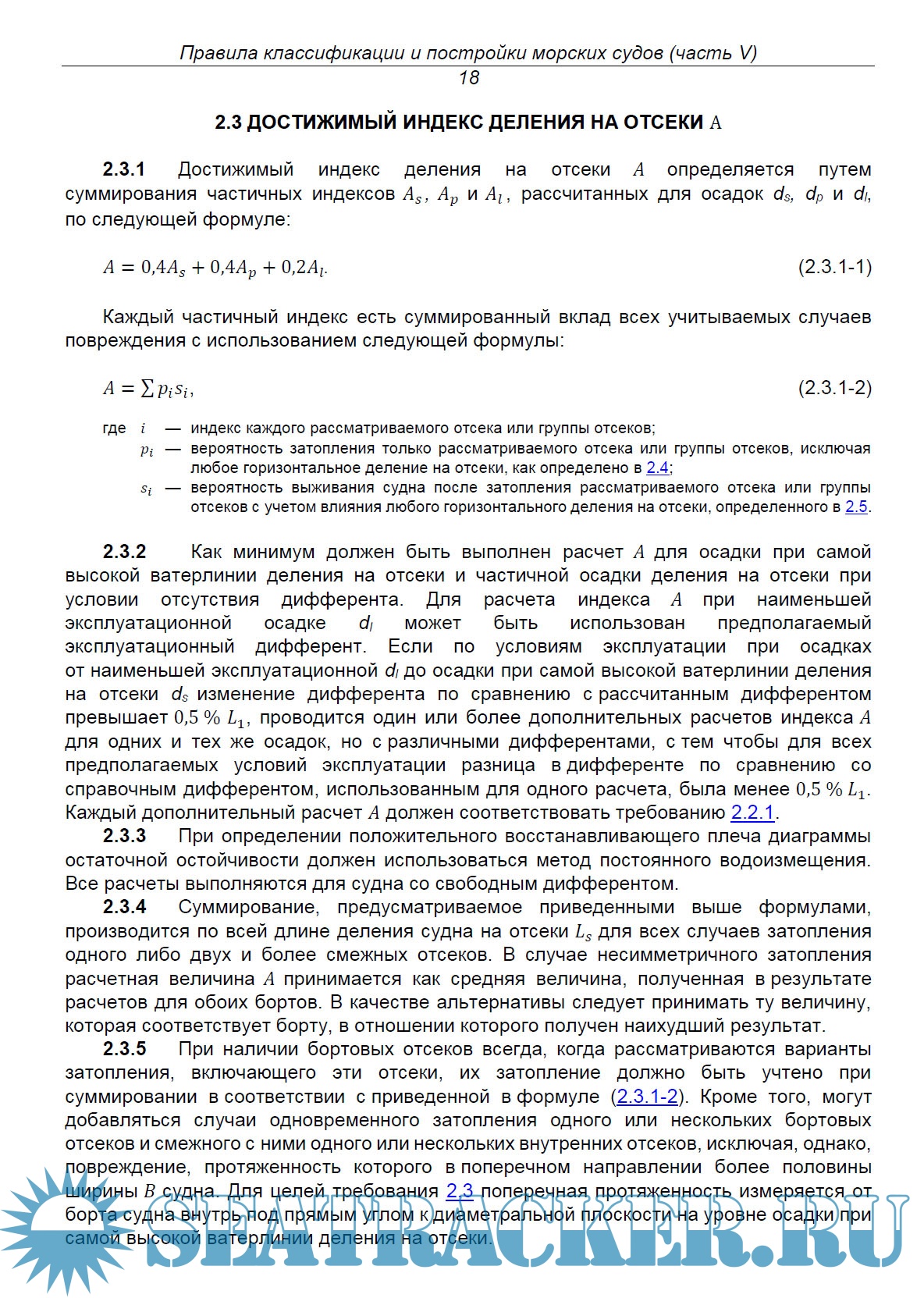 РМРС ЧАСТЬ V ДЕЛЕНИЕ НА ОТСЕКИ