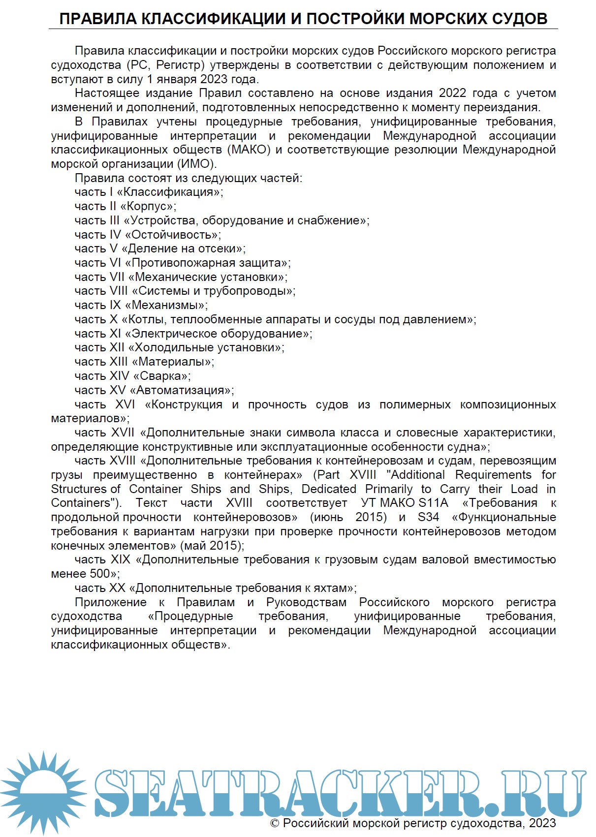РМРС ЧАСТЬ IX МЕХАНИЗМЫ