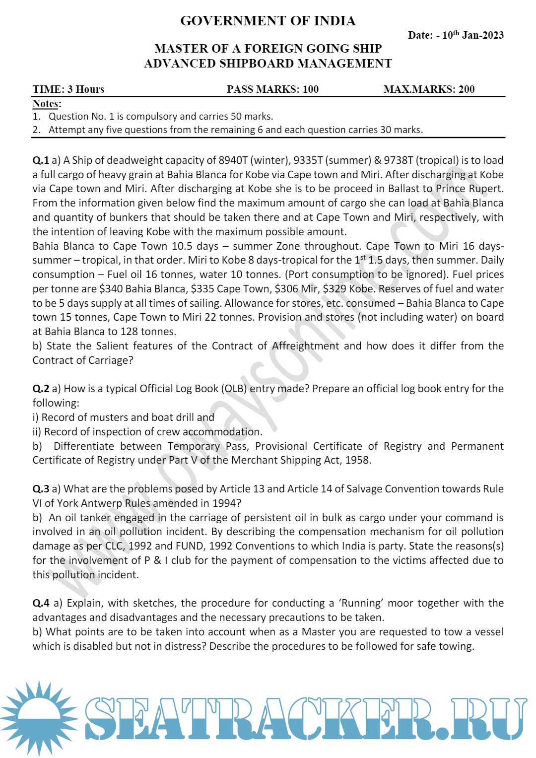 Orals Question Bank (July 2023) for ASM (Advanced Shipboard Management) / Master's Mercantile…
