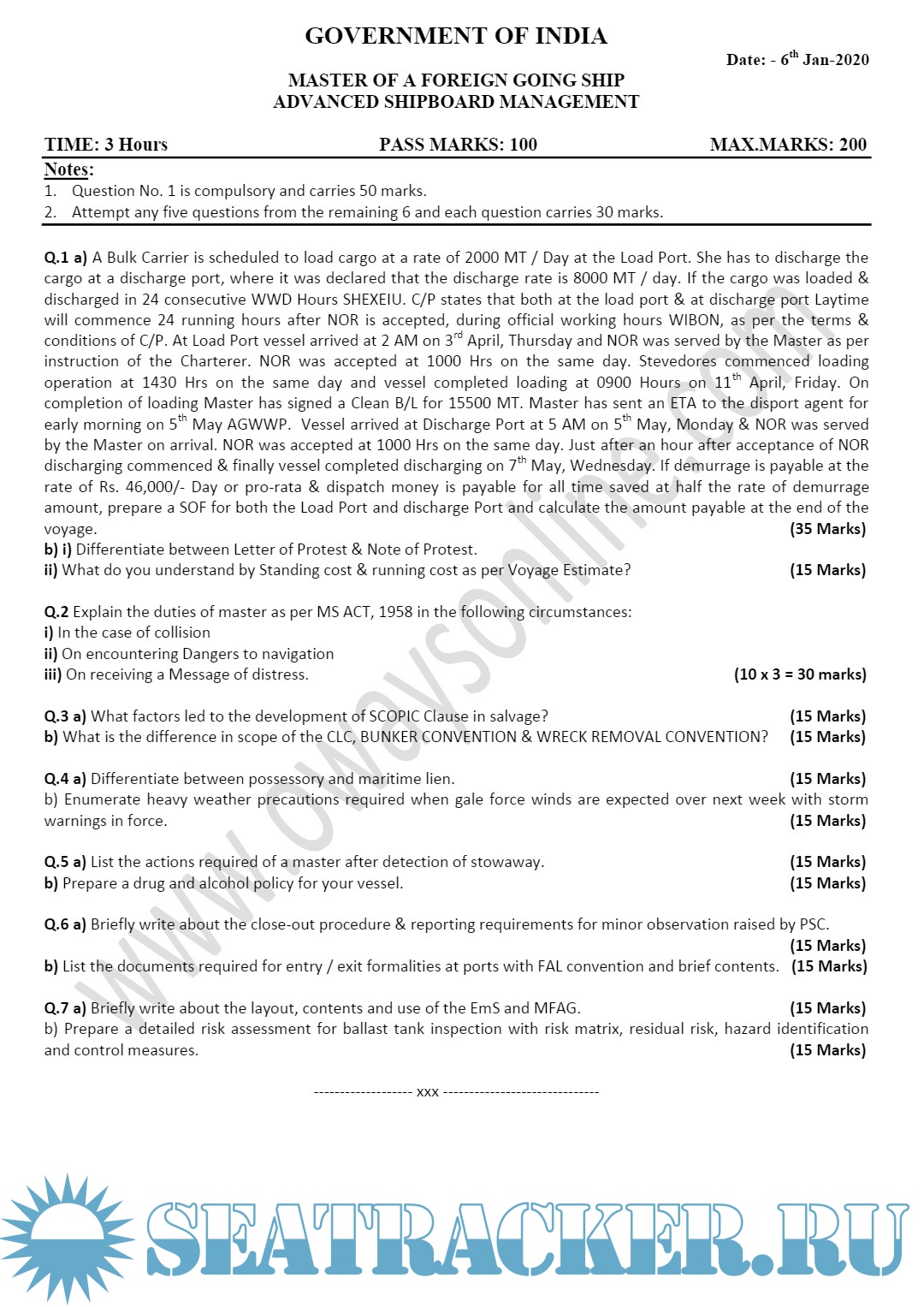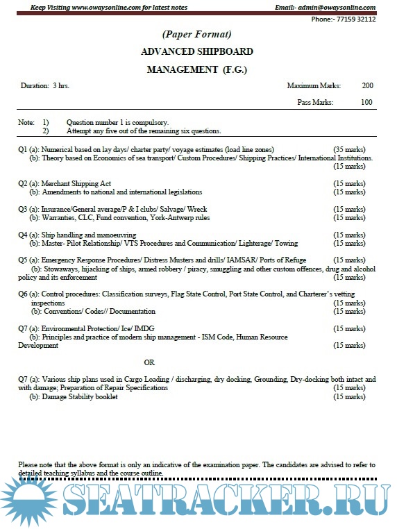Orals Question Bank for ASM (Advanced Shipboard Management) / Master's Mercantile Marine…