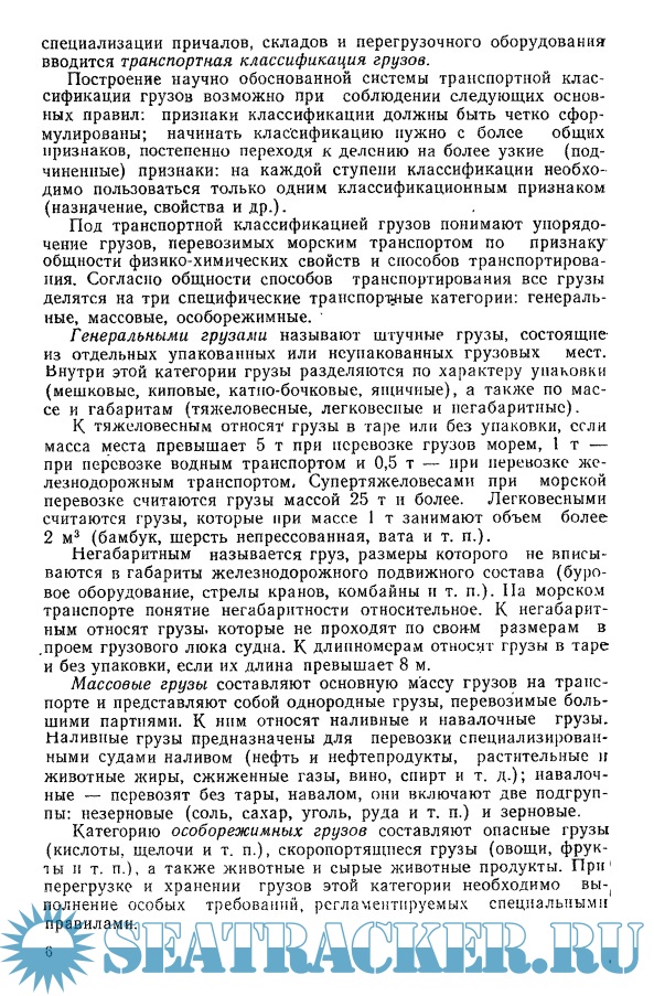 Год выпуска: 1982 Язык: русский Автор: Белинская Л.Н., Сенько Г.А. Жанр: Учебное пособие Издательство: Транспорт Формат: DjVu Качество: Неизвестно Количество страниц: 241 Описание: Рассмотрены свойства грузов, комплекс мероприятий, обеспечивающих их сохранность при транспортировании и хранении, рациональная загрузка складских емкостей и транспортных средств, порядок оформления приема и выдачи грузов, организация работы складской службы в портах. Приведены транспортные характеристики некоторых грузов, требования к таре и упаковке, рассмотрено влияние факторов внешней среды на состояние грузов, условия и способы укладки грузов на складах и в трюмах судов, железнодорожных вагонах и автомобилях. Дано описание технических условий строительства складов и транспортных средств, правил эксплуатации складов, организационной структуры складских служб в портах, основных видов работ, осуществляемых складскими работниками, способов определения массы грузов, документального учета движения грузов и учета груза в АСУ «Порт». Особое внимание уделяется вопросам охраны окружающей среды и рационального использования водных ресурсов.