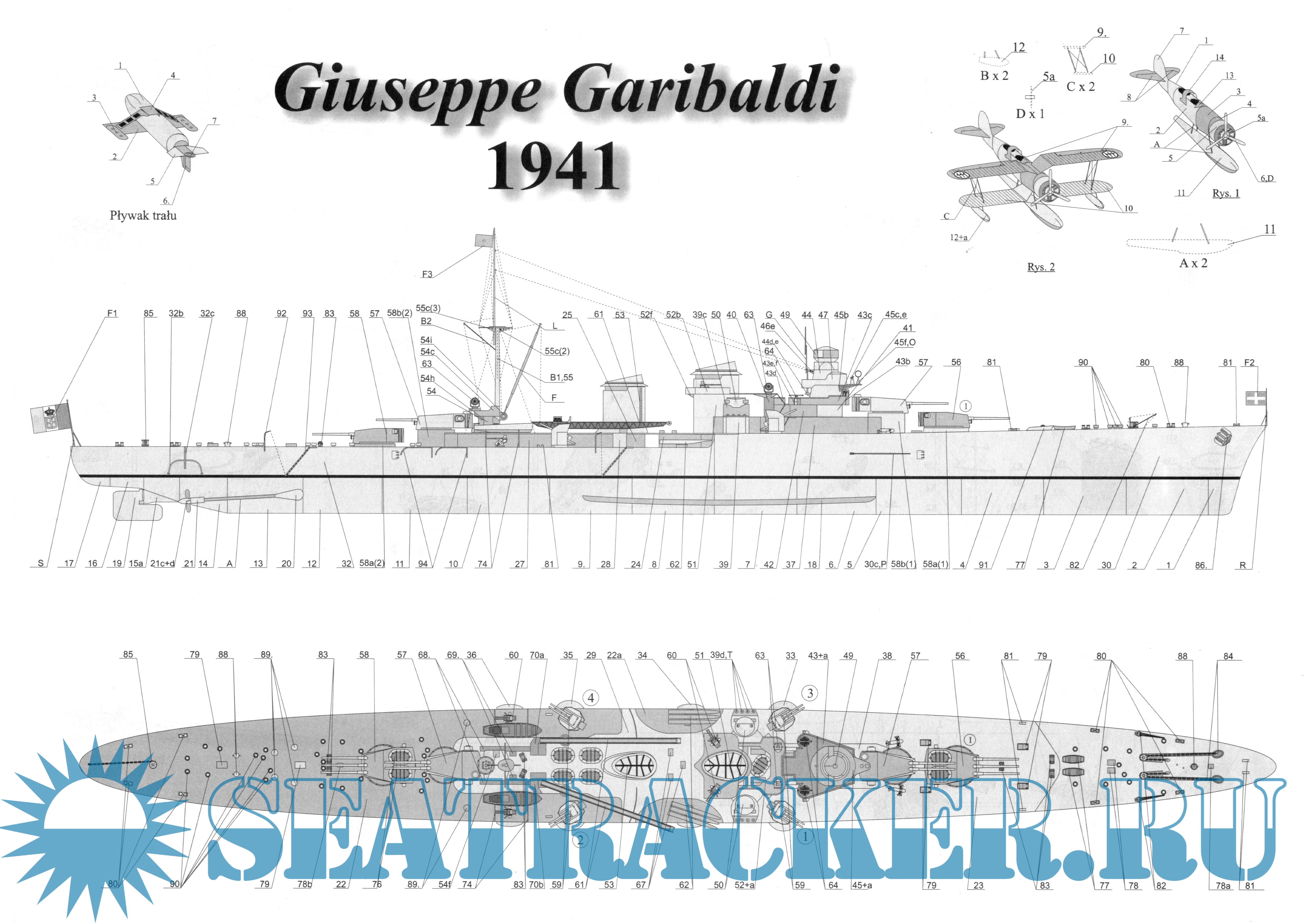 14 листов цветных выкроек и инструкций для изготовления бумажной модели лёгкого крейсера Giuseppe Garibaldi 1941 год (Италия) в масштабе 1:200Скриншоты