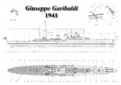 Описание: 14 листов цветных выкроек и инструкций для изготовления бумажной модели лёгкого крейсера Giuseppe Garibaldi 1941 год (Италия) в масштабе 1:200