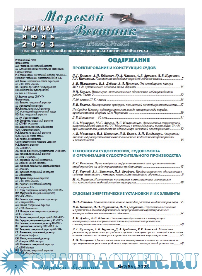 Год выпуска: 2023 Язык: русский Автор: Группа авторов Жанр: Периодическое издание (журнал) Формат: PDF Качество: Изначально компьютерное (eBook) Количество страниц: 111 Описание: Информационные, аналитические, научно-технические и исторические статьи по морской технике и технологиям, экологической безопасности судостроения и судоходства, освоению океана и шельфа, безопасности мореплавания, истории флота и мореплаваний, морскому бизнесу и праву.