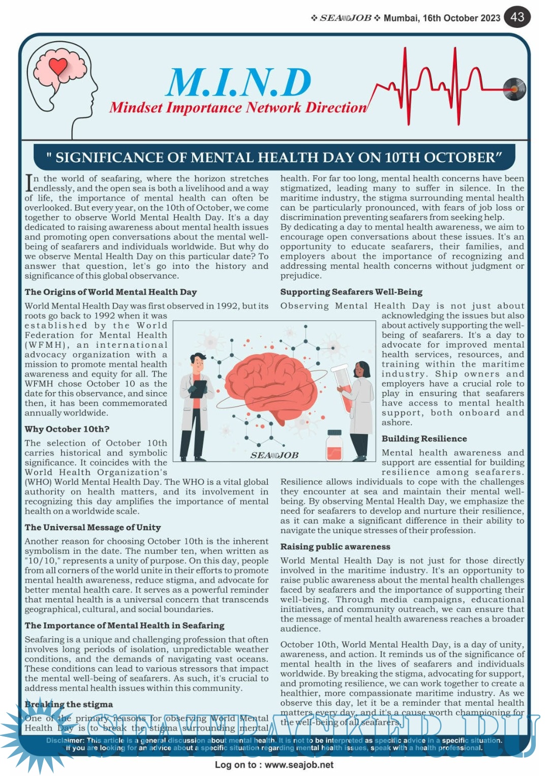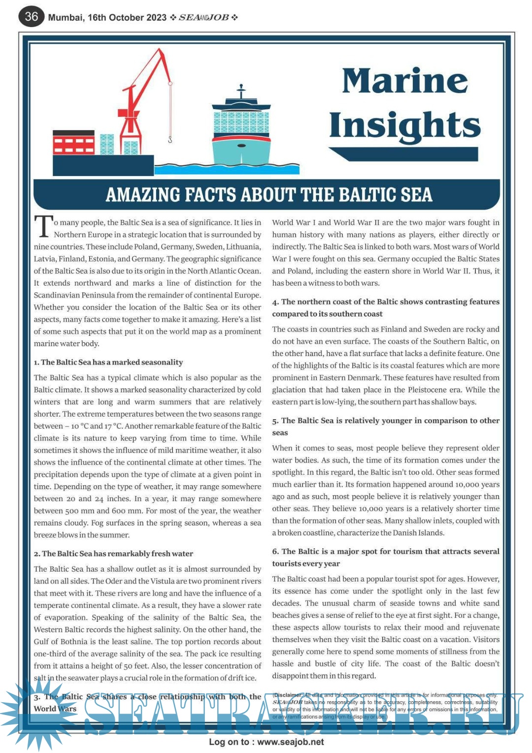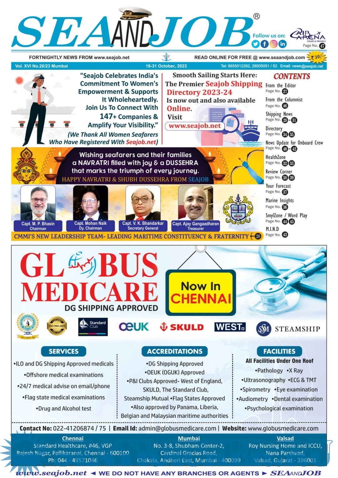 Description: The Sea and Job magazine launched in May 2007, was the second venture of Sea Line Group succeeding 'seajob.net' bringing the much renowned essence to the Group, the Sea and Job Magazine quickly gained popularity, becoming the No. 1 Shipping Magazine that came to be widely circulated all over India. Sea and Job over the years has evolved as the most trusted, ethical, objective and read maritime publication that possesses a large database of subscribers from various verticals in the industry.The magazine provides informative and interesting articles covering not just the shipping world but also the world outside it.Sea and Job is also a medium for the shipping/ manning companies to advertise marine jobs and also to promote their organization by publicizing internal activities like seminars, sports events and parties.Some notable endeavors of the magazine include the Know Your Recruiter Column, the Sailing Episodes Column and the Marine Insights section. The consistent efforts and the dedication to provide extraordinary services to the industry has resulted in the magnifying popularity and patronage of Sea and Job.